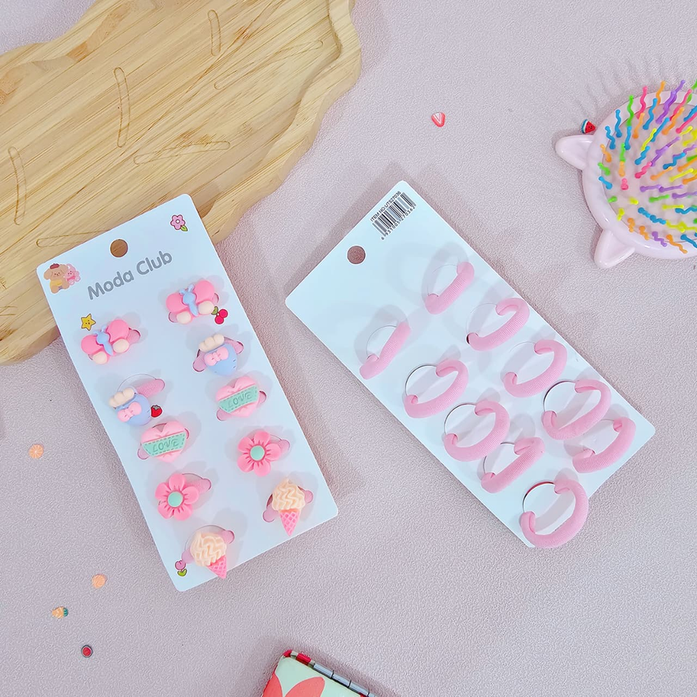 (Gomitas elásticas para el cabello. Las gomitas de diversos colores son de tamaño mediano y muy elásticas).