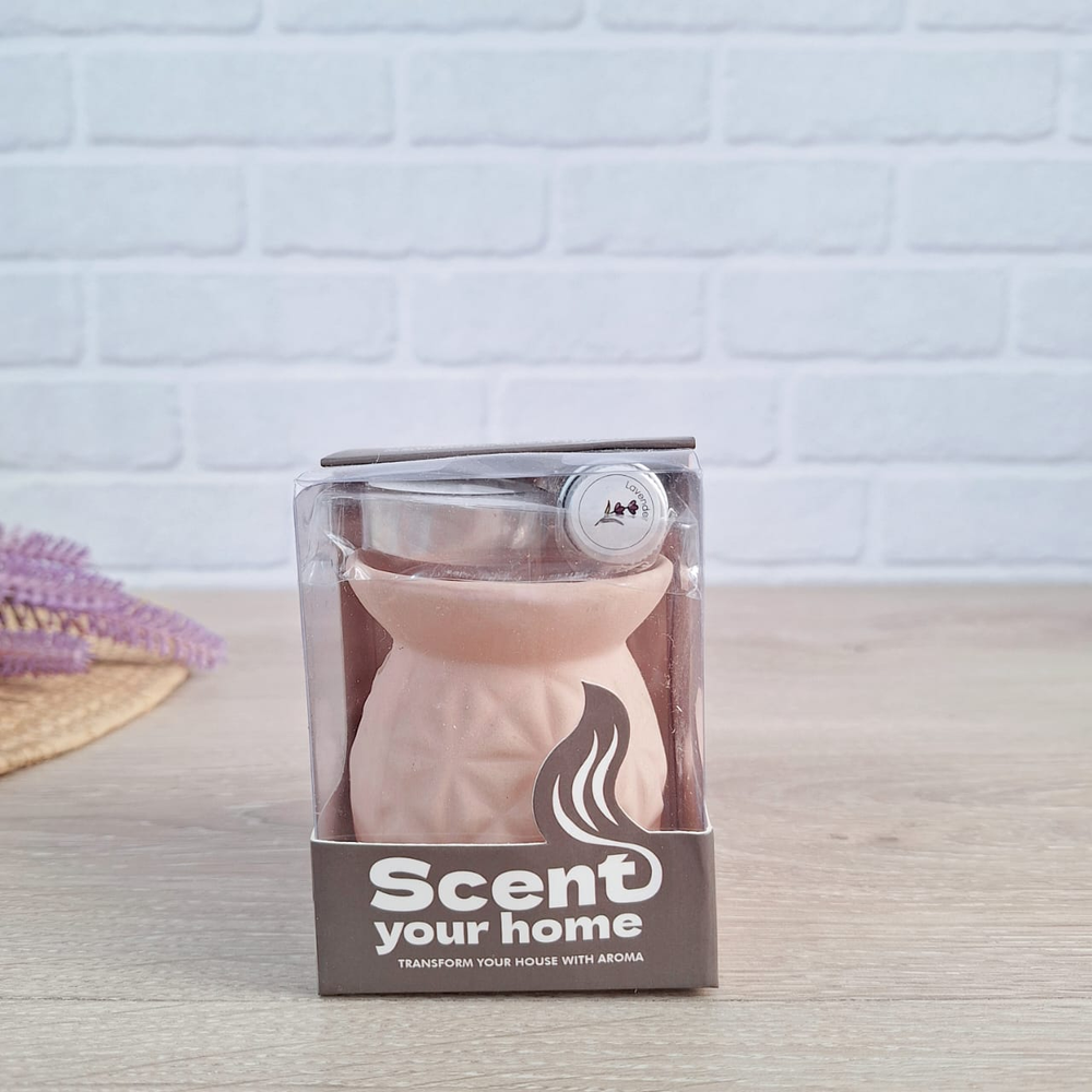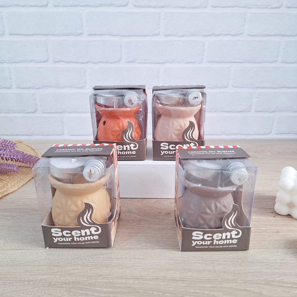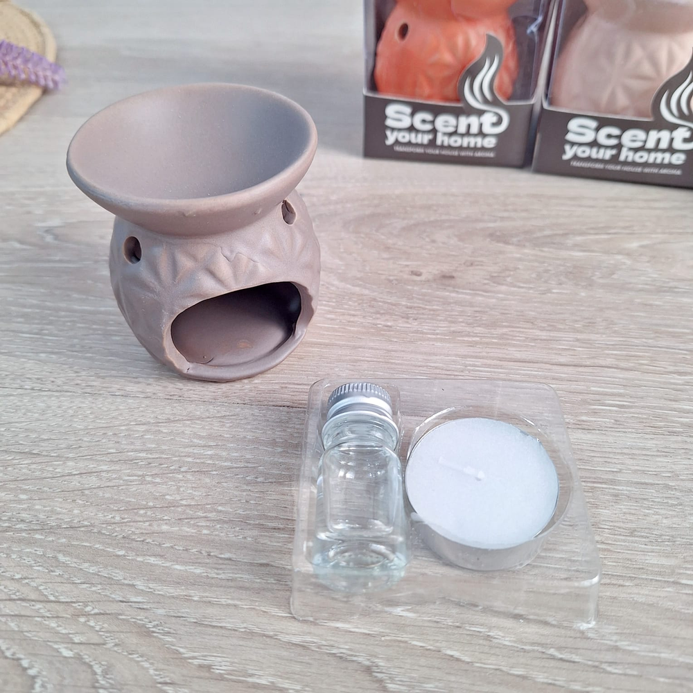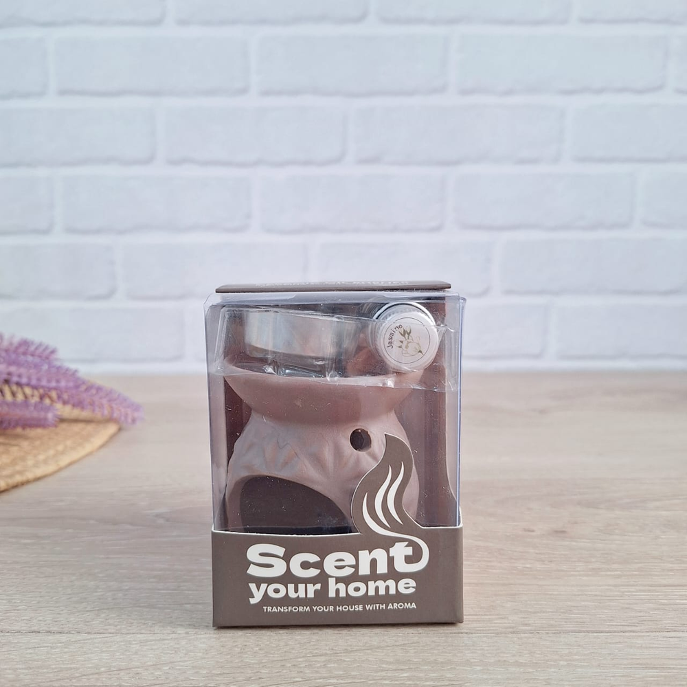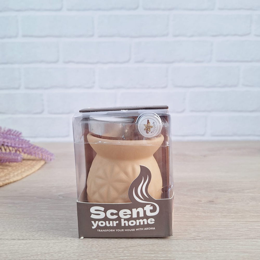 (Hornito para esencia con hermosos relieves, trae consigo esencias florales como rosa, jazmin y vainilla, vienen surtidas. Tambien incluye una vela).
