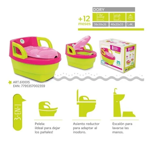 (Pelela ideal para dejar los pañales, sirve también como asiento reductor para adaptar al inodoro y como escalón para lavarse las manos. Ideal para usar luego de 12 meses de edad, es fácil de armar y de limpiar).