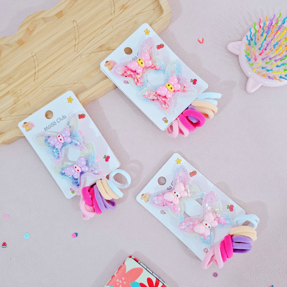 (Pack x 12 Blíster. Cada blíster cuenta con 5 pares de colitas con distintas tonalidades y hebillas de mariposa con letejuelas en su interior. Ideal para realizar peinados). (Ut. 29)