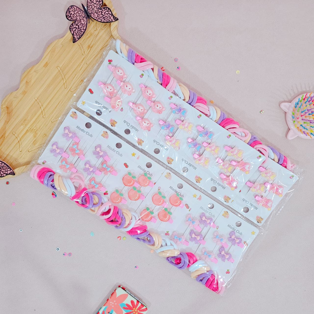 (Pack x 12 Blíster. Cada blíster cuenta con 4 hebillas en distintas formas y colitas para el pelo . Ideal para realizar peinados).