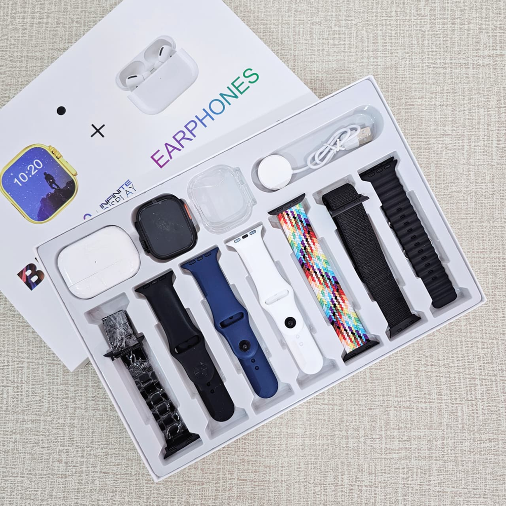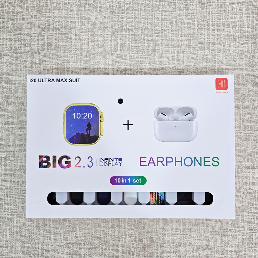 (Descubre el Smartwatch i20 Ultra Max, un reloj inteligente que combina tecnología de última generación con un diseño elegante. Equipado con una pantalla LCD de 2.09 pulgadas y resolución 420x420, este smartwatch es totalmente táctil, lo que facilita su uso diario. PARA RECIBIR NOTIFICACIONES Y MODIFICAR FONDO DE PANTALLA PERSONALIZADO, SE NECESITA SI O SI LA APP “LAXASFIT”! Incluye: Auriculares Bluetooth Pro3 para una experiencia auditiva superior. Cargador inalámbrico magnético y un protector para el reloj. Características Destacadas: Conectividad: Disfruta de Bluetooth 4.0 y 5.0, permitiendo realizar llamadas y escuchar música directamente desde tu muñeca. Además, cuenta con comandos de voz para una experiencia más fluida. Resistencia al Agua: Con clasificación IP67, este reloj es perfecto para resistir salpicaduras y lluvias leves, ideal para quienes llevan un estilo de vida activo. Batería: Su batería de 280 mAh ofrece una autonomía que varía entre 12 a 48 horas, dependiendo del uso, asegurando que siempre estés conectado. IMPORTANTE: a la hora de cargar el smarwatch utilice un cargador SALIDA: 5v / 2A o inferior. Mallas Intercambiables: Viene con 7 mallas intercambiables de distintos materiales como metálica, velcro y silicona, adaptándose a cada ocasión.)