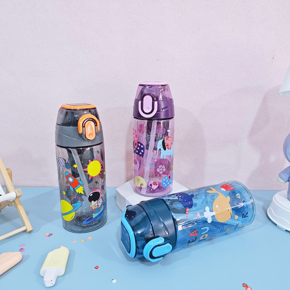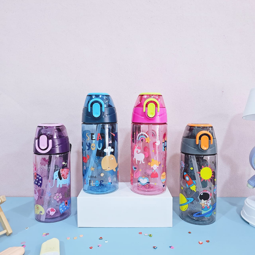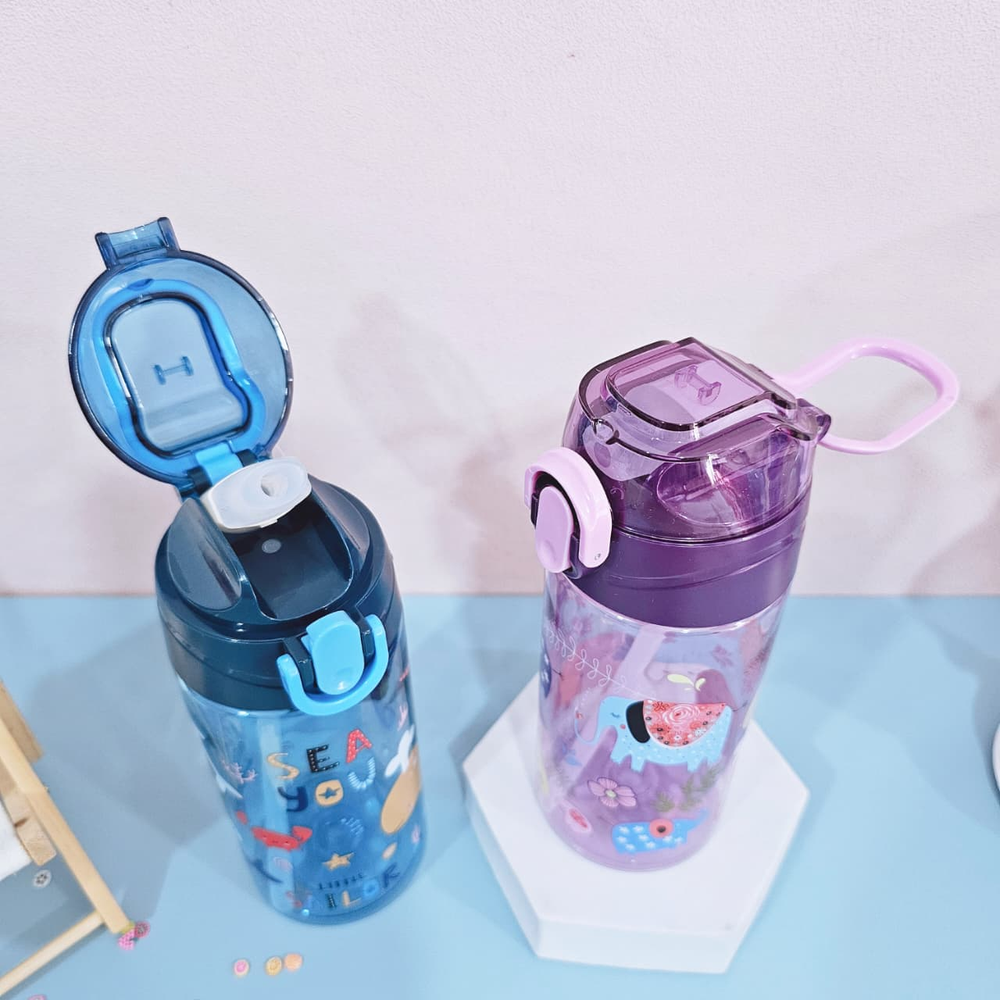 (Esta botella cuenta con una capacidad de 450ml, tapa hermética, pico de succión y sorbete. Disponible en 4 colores diferentes).