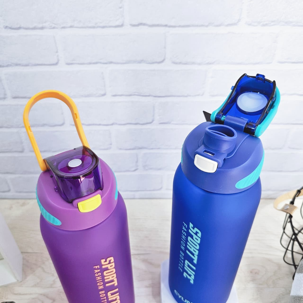 (Cuenta con un formato muy cómodo y funcional. La tapa se enrosca de forma segura , el pico tiene una tapa para mantenerlo limpio y se abre con solo presionar un botón, cuenta con un sorbete. Ideal para uso habitual).
