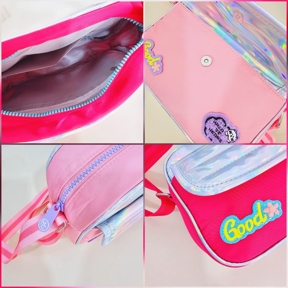 (Bandolera ideal para niñas y teens, disponibles en 5 colores: rosa, fucsia, lila, verde agua y negro. En su interior hay 2 compartimentos 1 bolsillo con cierre, en la parte externa hay 1 bolsillo grande. Tiene correa ajustable en color haciendo juego).