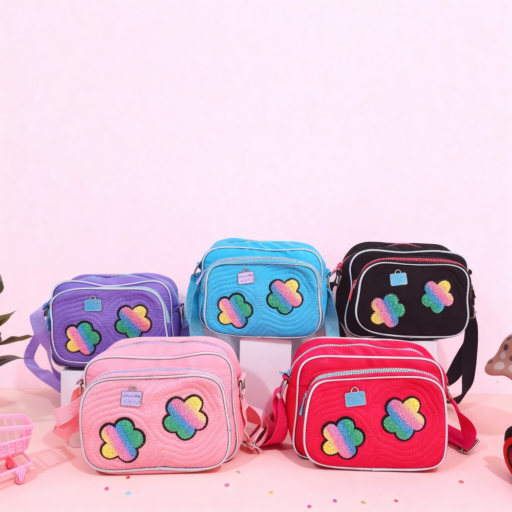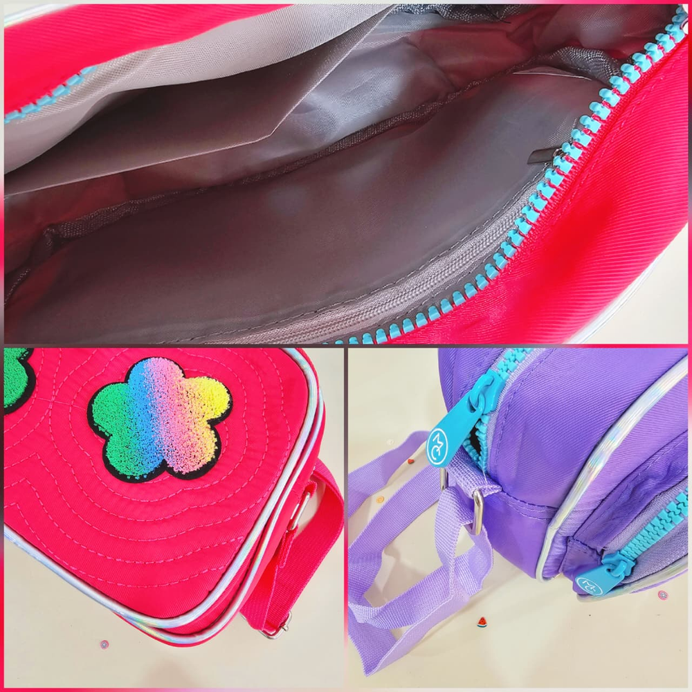 (Bandolera ideal para niñas y teens, disponibles en 5 colores: rosa, fucsia, lila, verde agua y negro. En su interior hay 2 compartimentos 1 bolsillo con cierre, en la parte externa hay 1 bolsillo grande. Tiene correa ajustable en color haciendo juego).