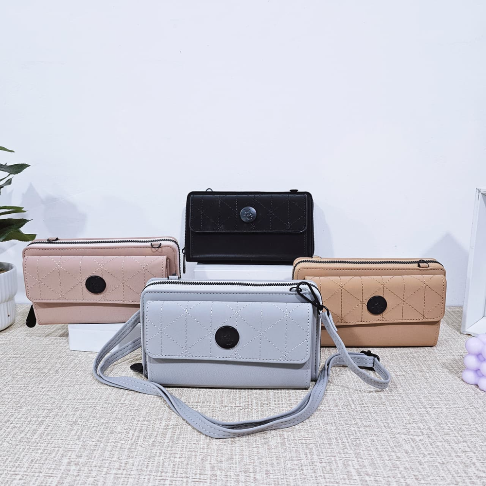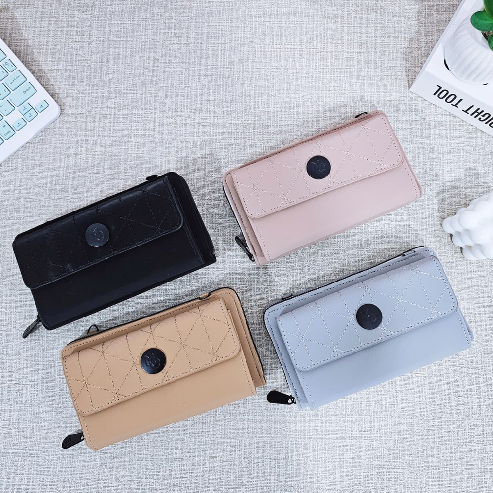(Billetera Grande lisa que puede usarse también como bandolera ya que incluye una correa para transportarla, en su interior cuenta con 4 compartimentos, uno de ellos con cierre.También incluye en su interior 6 bolsillos chicos para tarjetas o documentos. En la parte delantera tiene un compartimento con cierre donde puede colocarse el celular u otro objeto).
