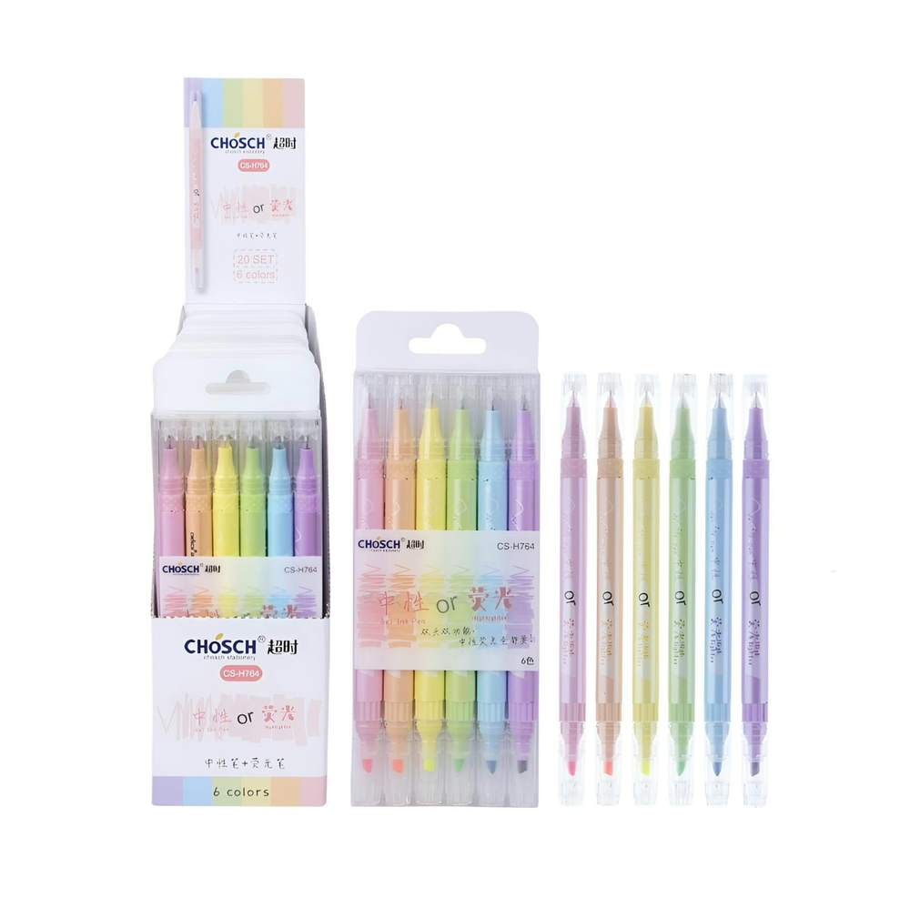 (El set incluye marcadores en colores pastel con un diseño de doble punta: una punta de cincel para resaltar y una punta fina para escribir. El diseño de doble punta es conveniente para resaltar, subrayar y escribir puntos clave, lo que lo hace ideal para estudiantes y profesionales).