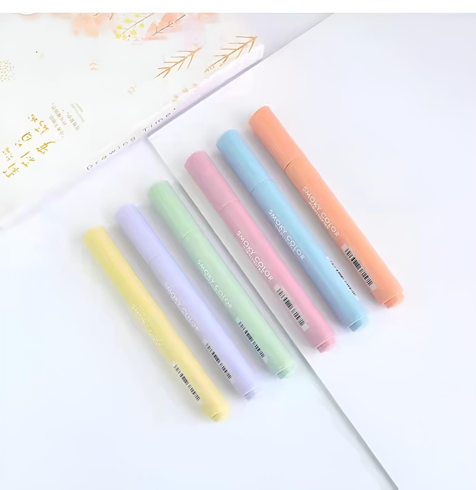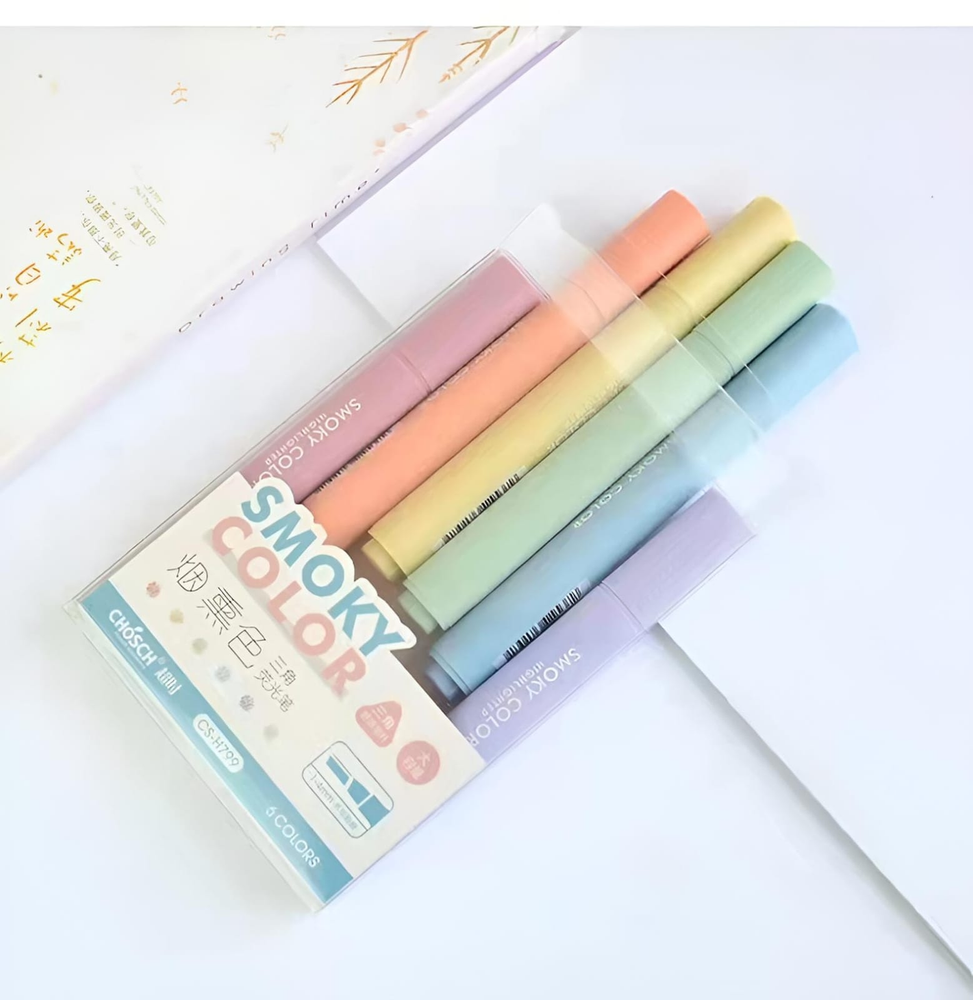 ( Set de 6 resaltadores en tonos pastel. Estos resaltadores tienen colores suaves y apagados, ideales para lettering, apuntes y proyectos creativos).