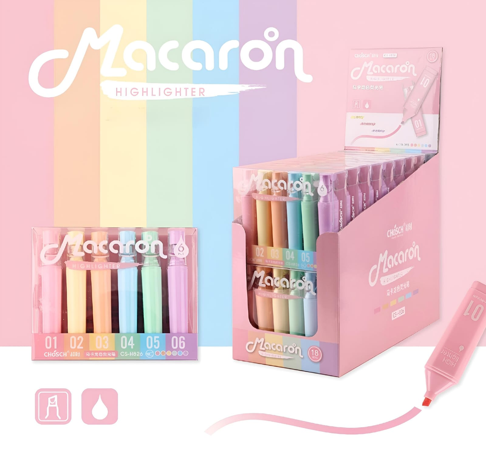 ( Set x 6U. de Resaltadores en tonos pasteles, punta biseladas. Son ideales para caligrafía, lettering, dibujo y manualidades).