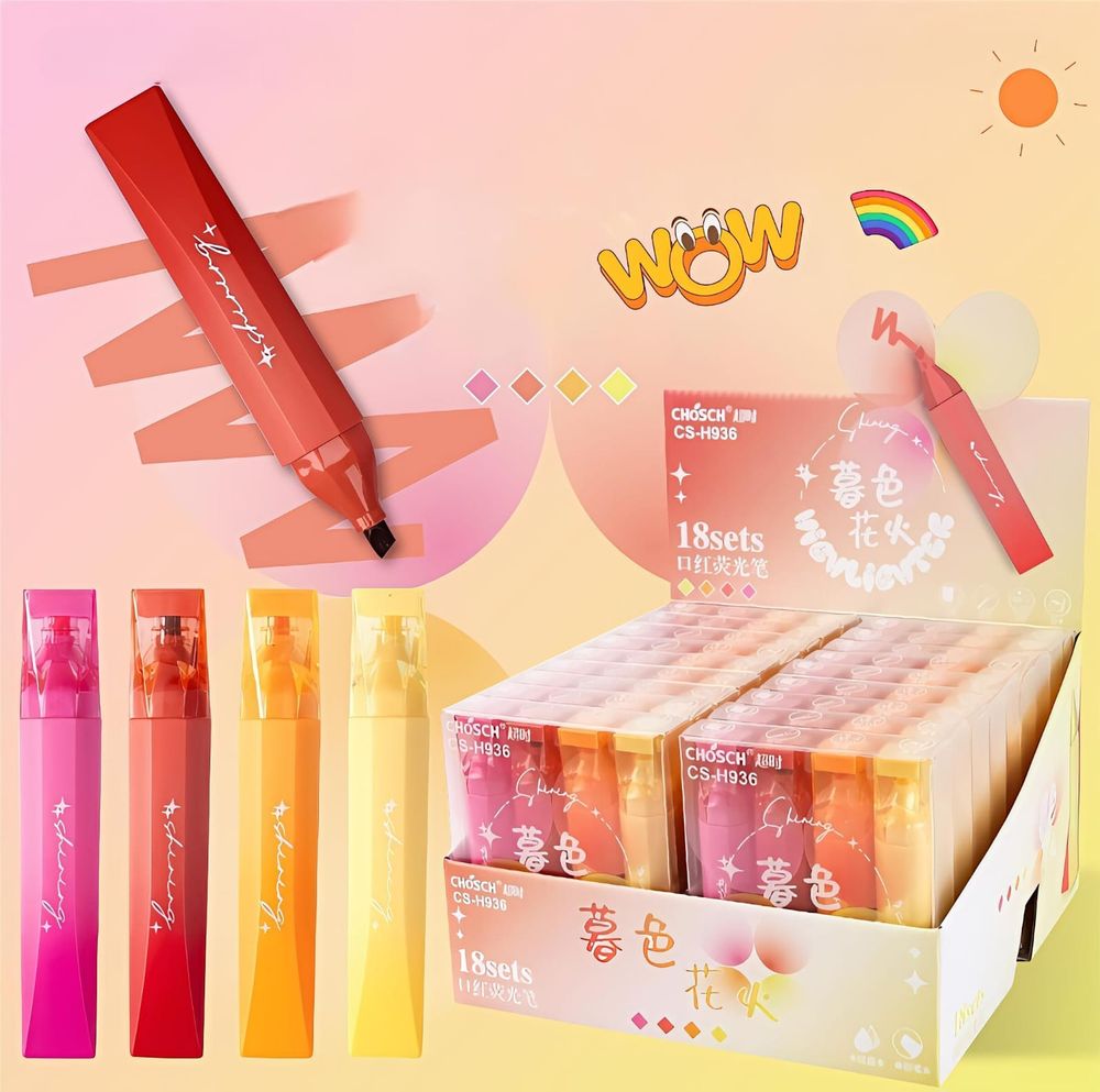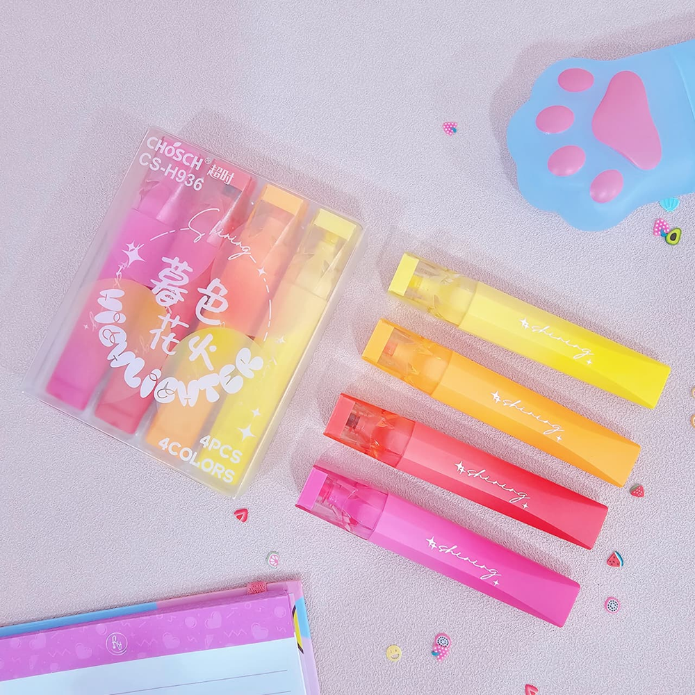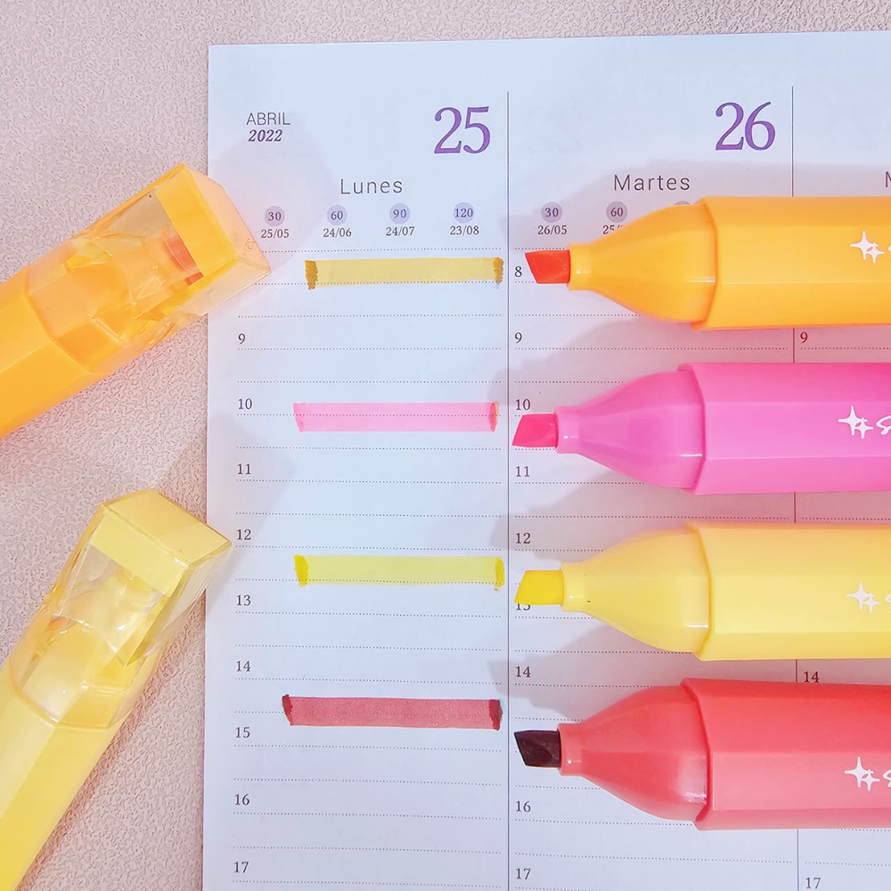 (Set de 4 resaltadores en hermosos colores, punta biselada para trazo fino y grueso. Ideal para dar un diseño único y divertido a tus apuntes). ut30