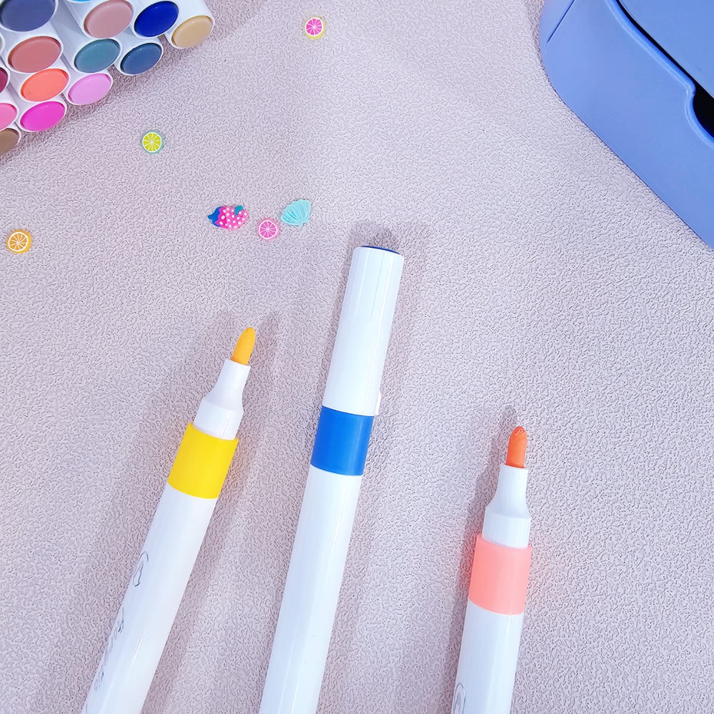 (Contienen pintura acrílica a base de agua, lo que los hace no tóxicos y fáciles de limpiar. Se pueden usar en una variedad de superficies, como papel, madera, tela, vidrio y cerámica).