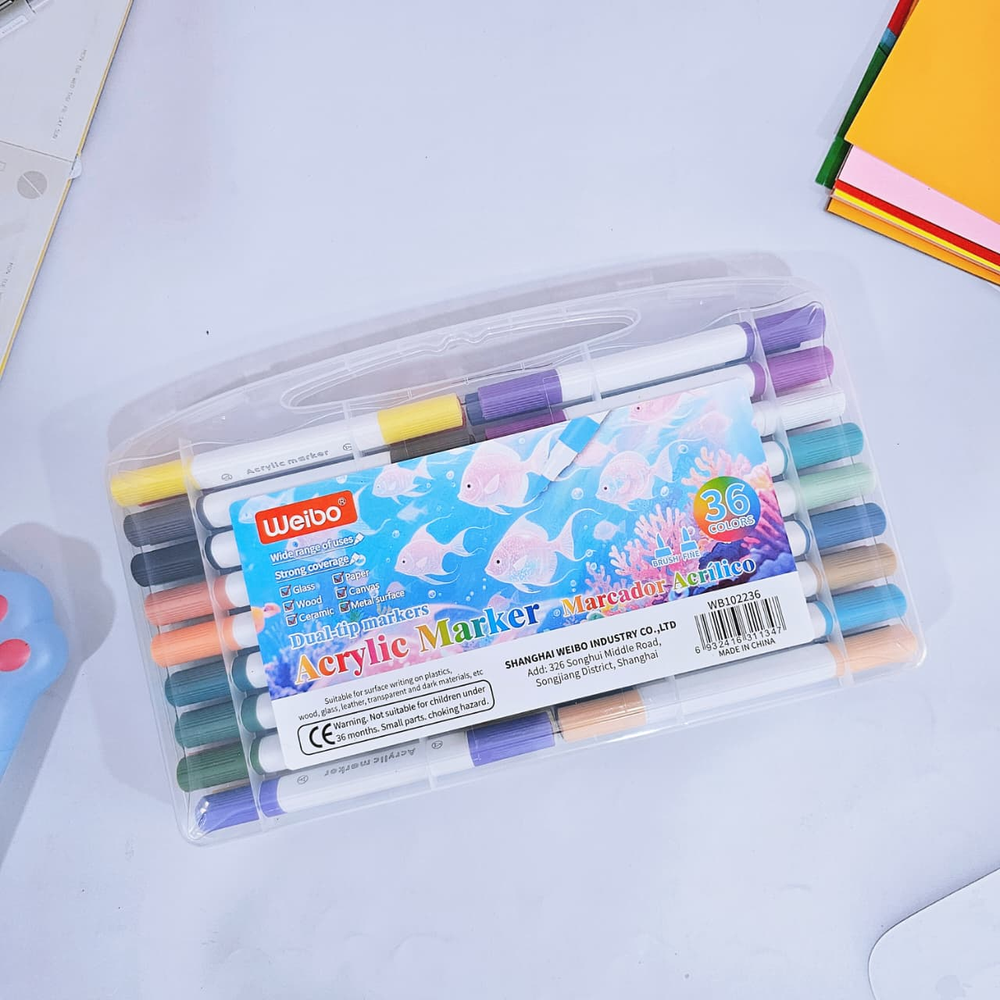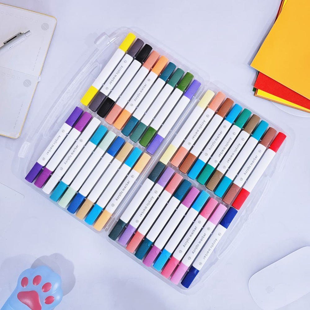 (Estos marcadores contienen pintura acrílica en su interior, lo que les permite pintar sobre casi cualquier superficie, como papel, madera, tela, vidrio y cerámica. tienen doble punta (una fina y una de pincel), lo que los hace versátiles para realizar detalles y rellenar áreas más grandes)