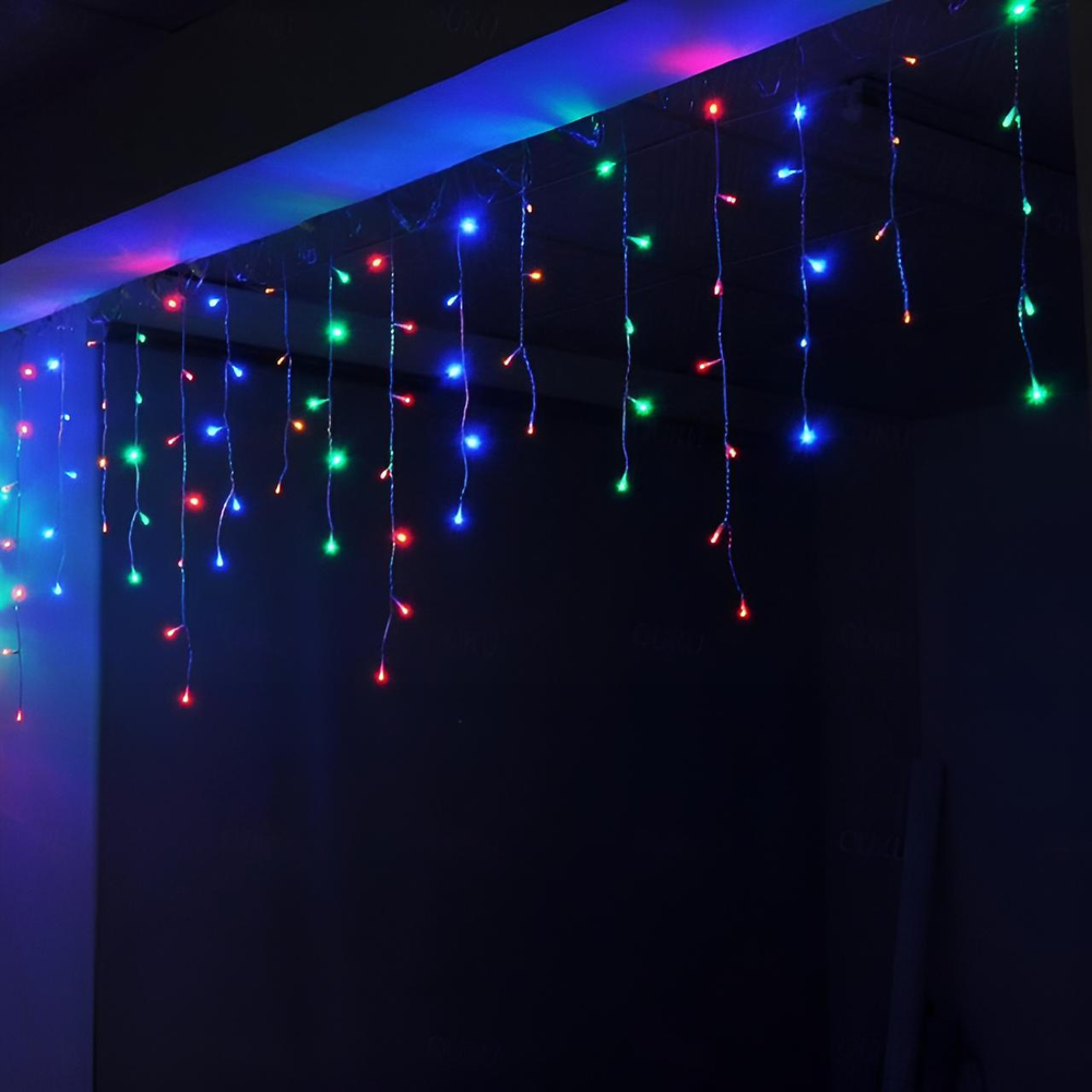 (Cortina de 165 luces LED Multicolor, ideales para decorar, tiene 4.5 metros de largo lo que genera un efecto visual similar a una cortina, funciona con enchufe y cuenta con un extensión para conectar otras luces ) (Ut31)