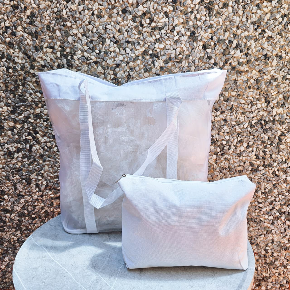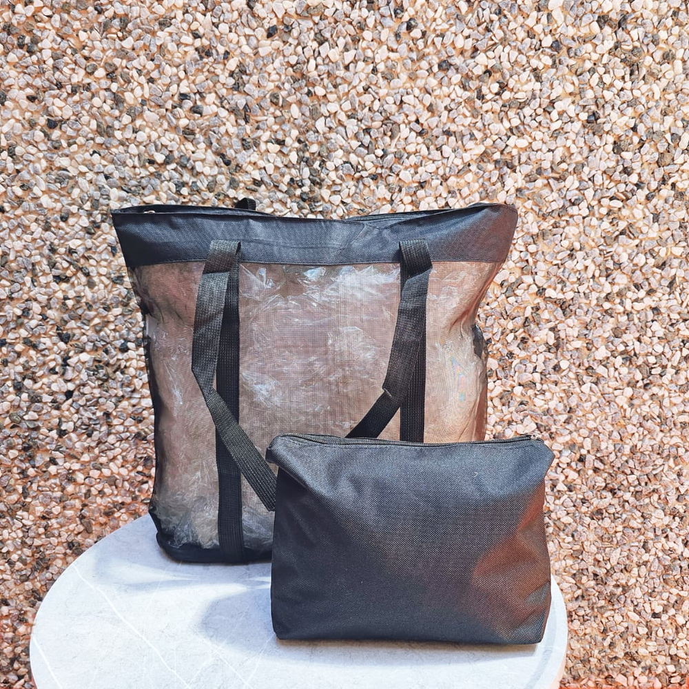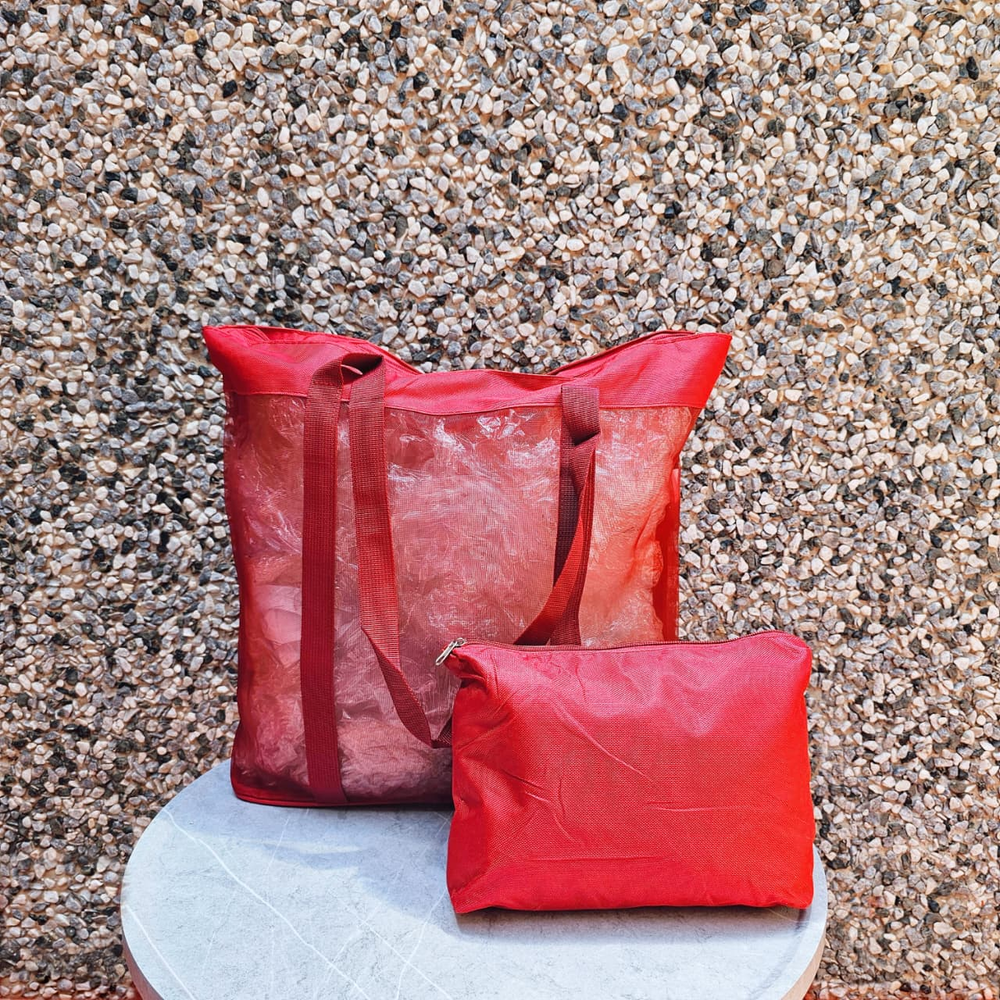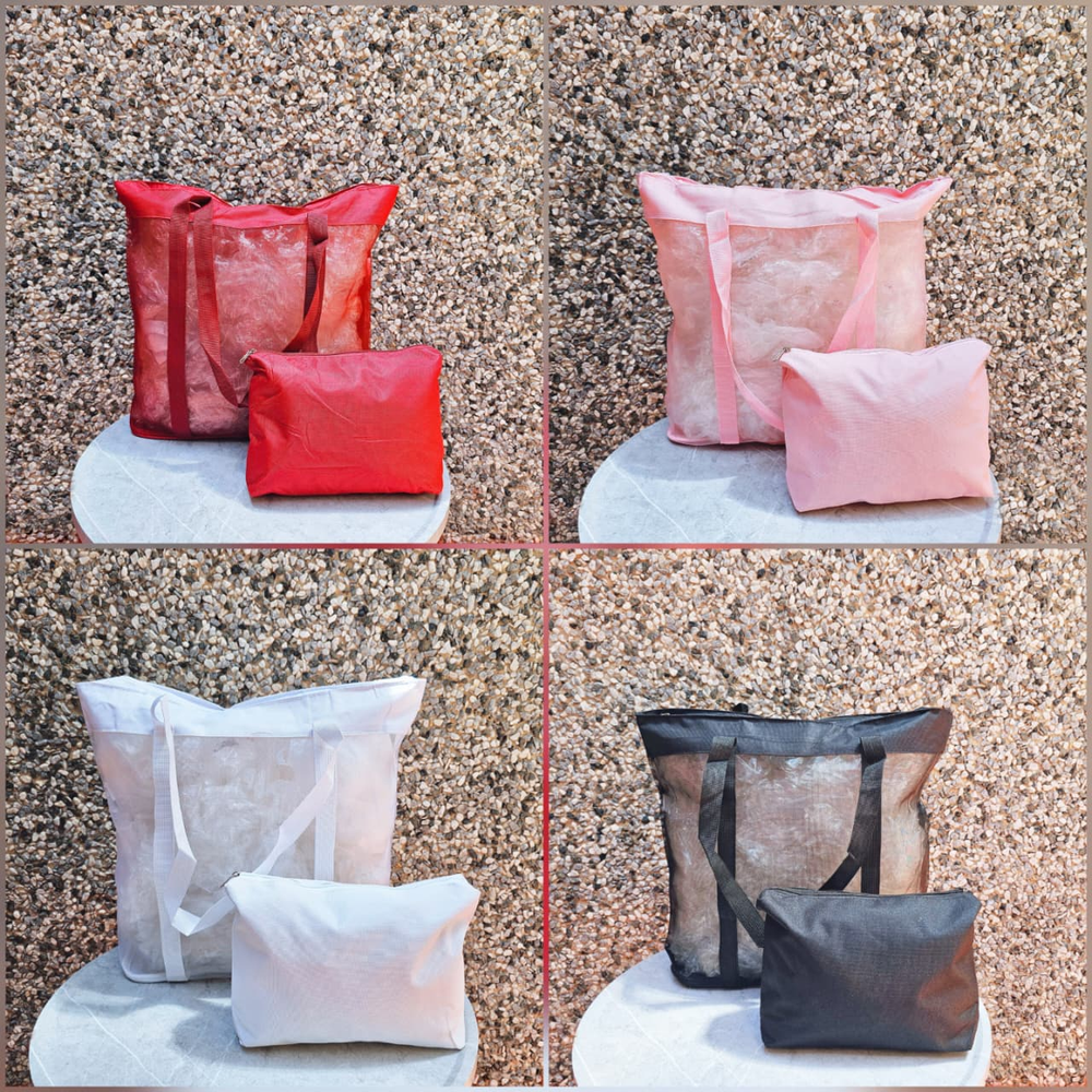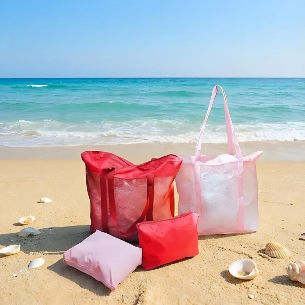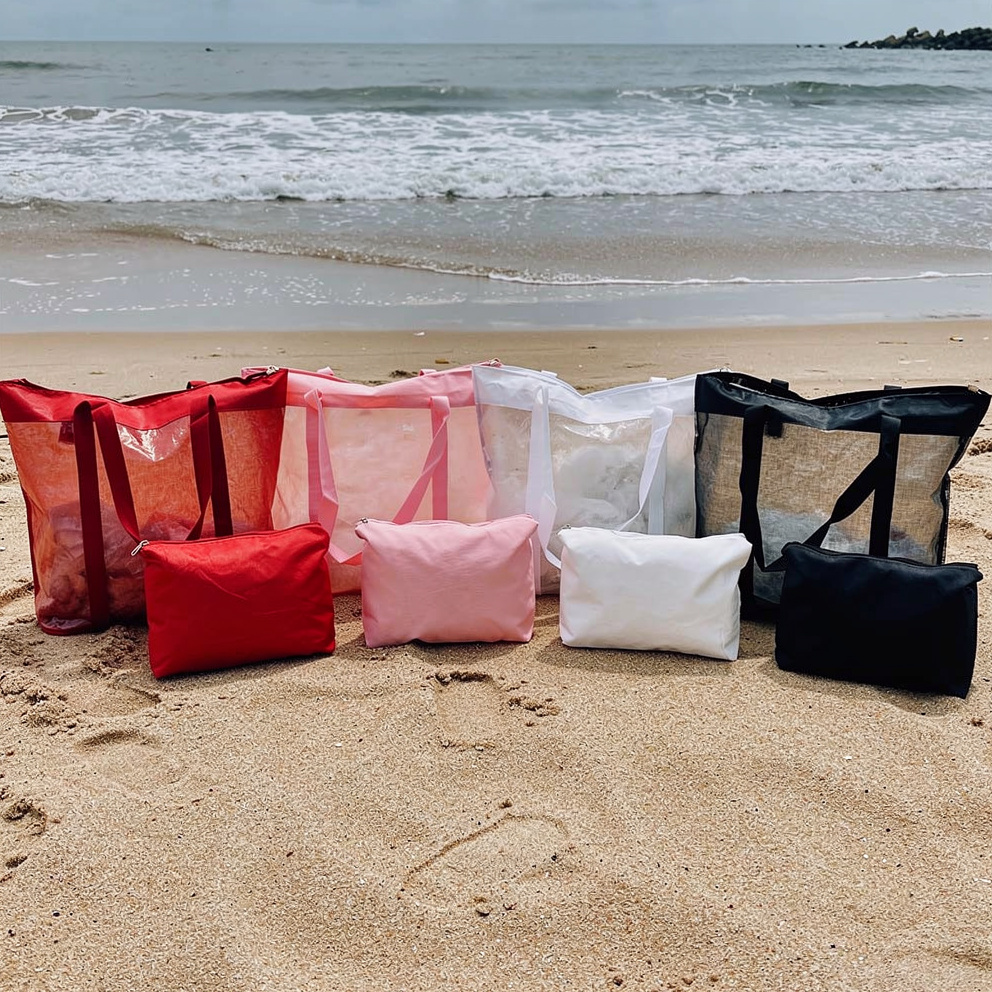 (Bolso playero diseñado para llevar fácilmente toallas, incluye neceser del mismo color del bolso para que puedas organizarte).