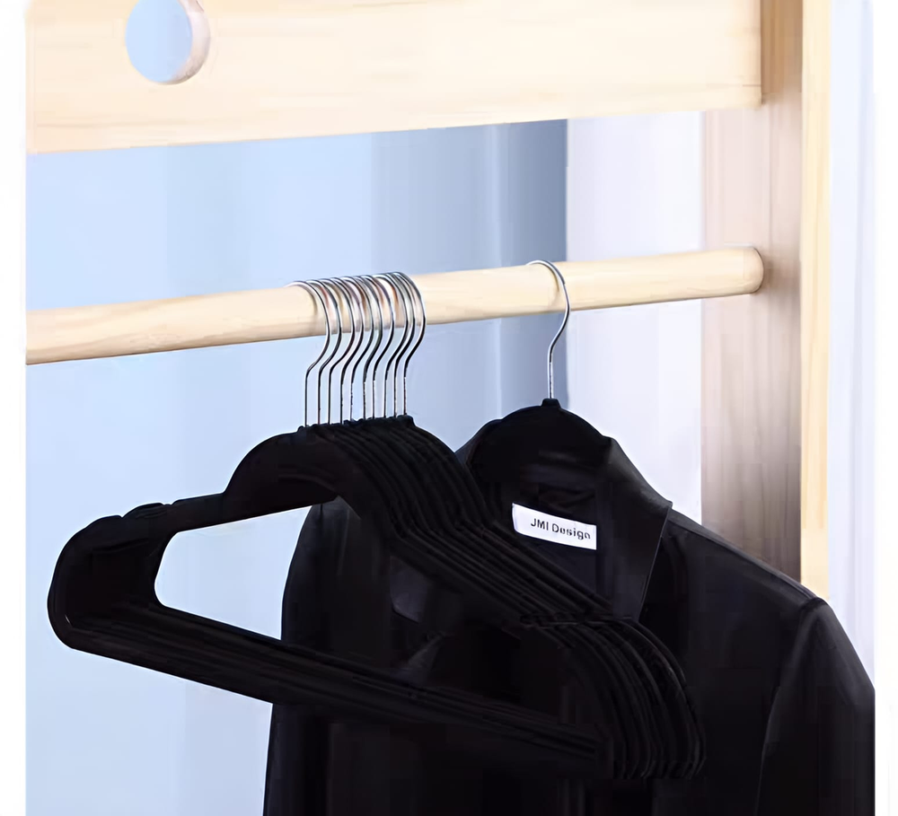 (Set de perchas de acero inoxidable con revestimiento de terciopelo, ideales para el hogar).