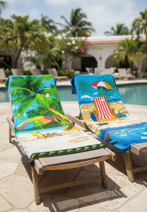 (Toallón de tela super suave, disponible en varias estampas y colores).