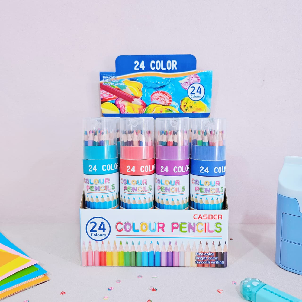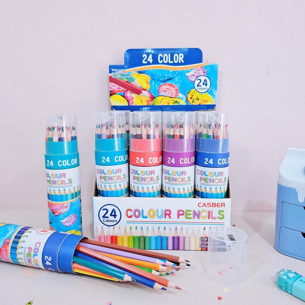 (Este set de lápices de colores combina funcionalidad y diversión en un diseño cilíndrico innovador. La tapa funciona como sacapuntas integrado, eliminando la necesidad de accesorios adicionales).