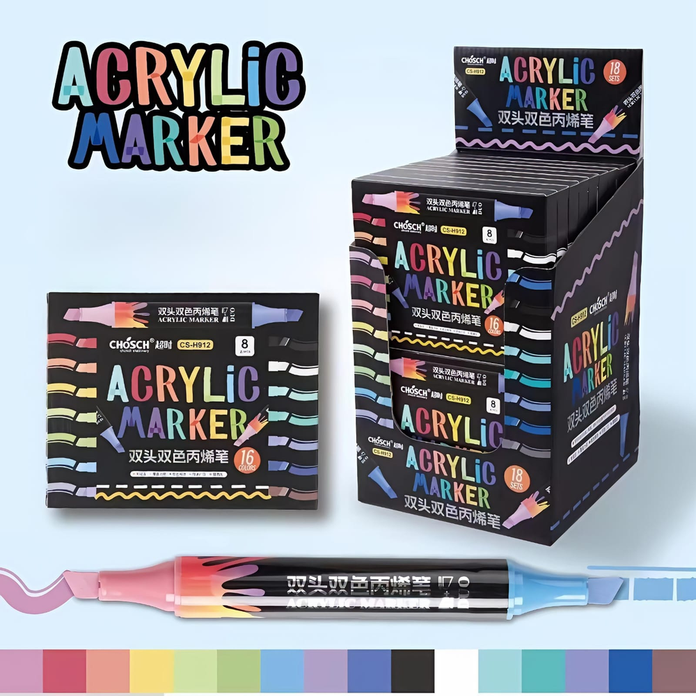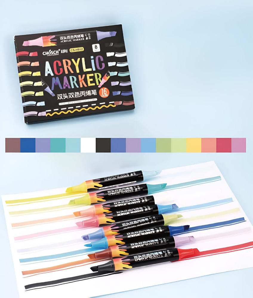 (Este Set incluye en total 16 colores, son ideales para pintar una gran variedad de superficies tanto oscuras como claras, la punta de los marcadores es de tipo biselada, lo que permite una aplicación suave y precisa, ideal para lettering y detalles artísticos).