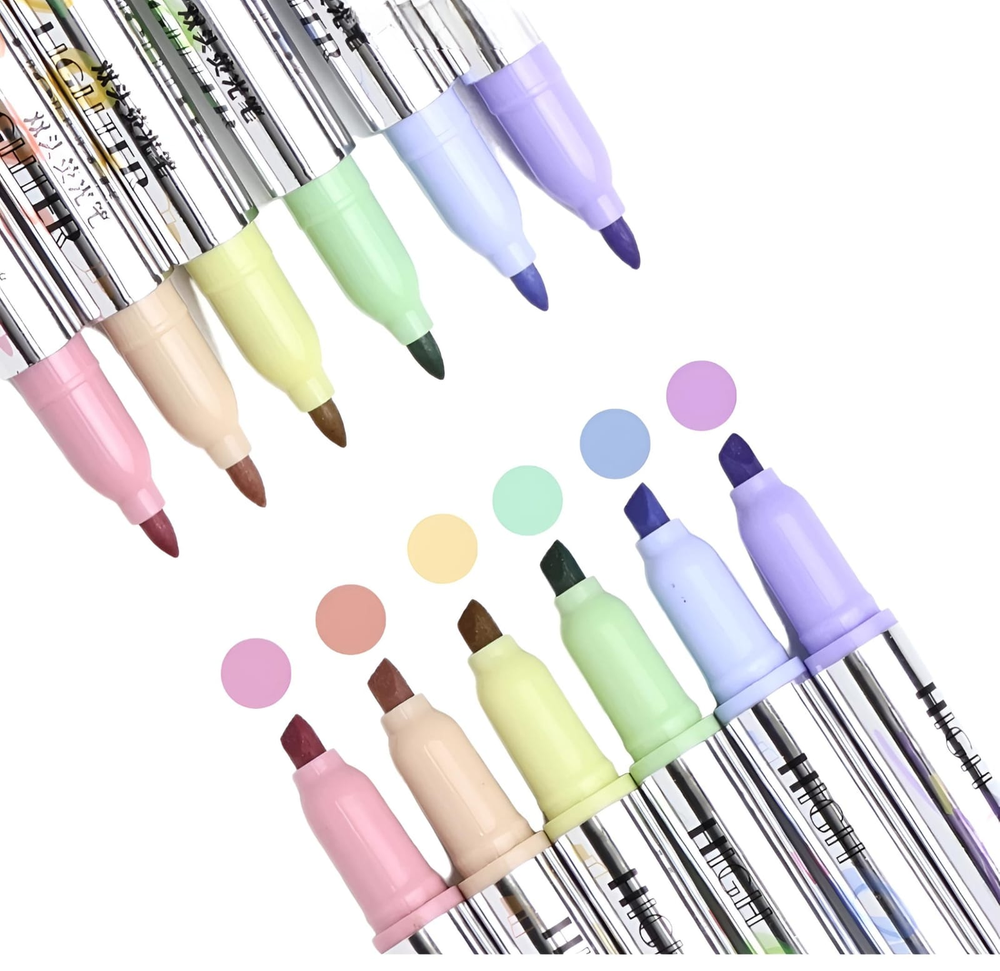 (Set de 6 resaltadores CHOSCH. Estos marcadores tienen dos puntas diferentes, lo que los hace versátiles para diversas tareas Una de sus puntas se utiliza para resaltar texto de manera uniforme y rápida en notas, libros o documentos. Y la otra sirve para subrayar, delinear o añadir detalles más precisos).