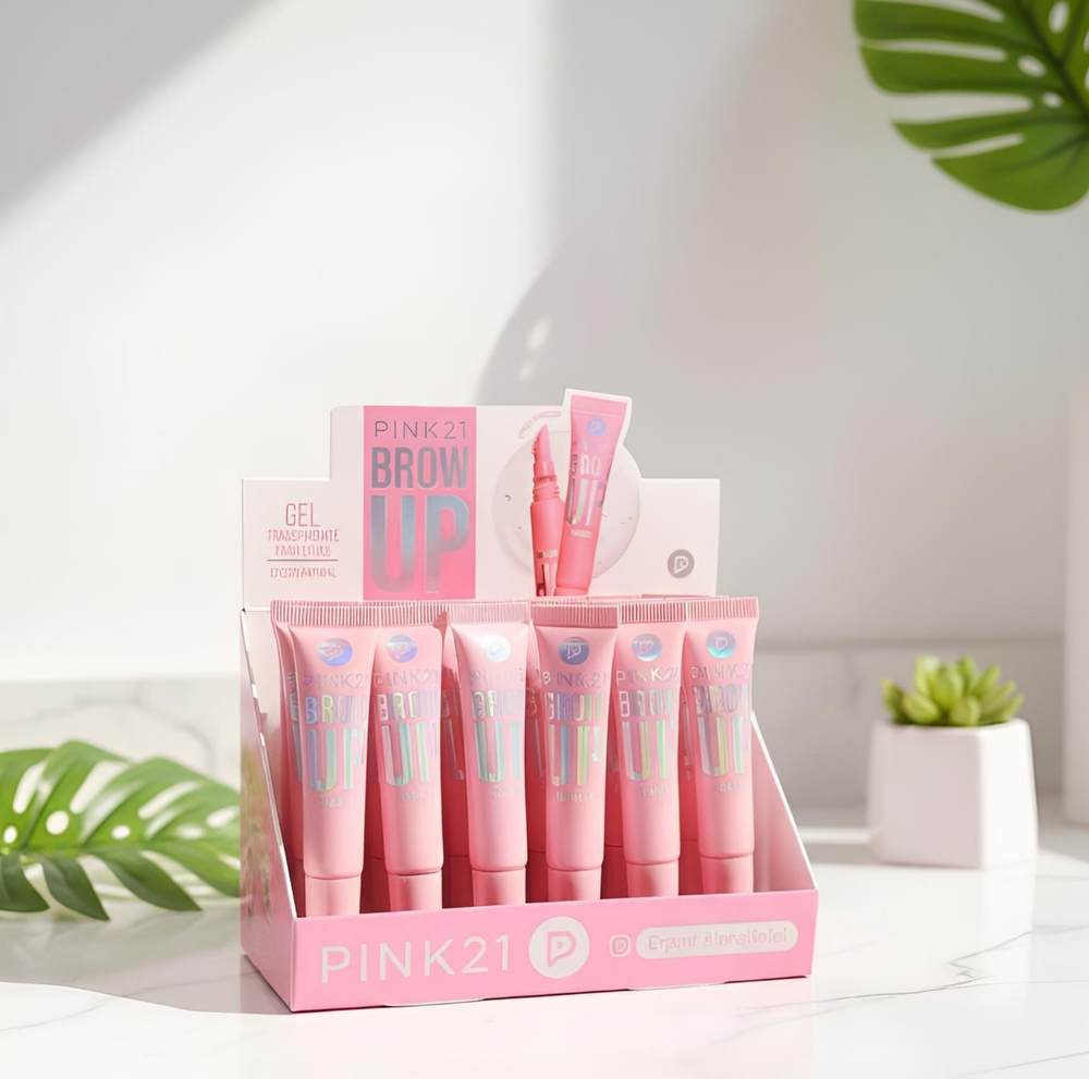 (Caja x 24U. Gel de Cejas con Cepillo "Pink 21" para fijar y peinarlas , dándoles un aspecto más definido y prolijo. Es un gel transparente que ayuda a moldearlas sin dejar residuos. Viene con un cepillo aplicador para facilitar su uso).