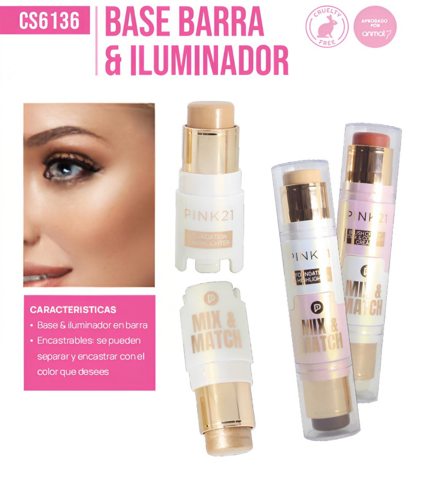 (Base e Iluminador en Crema Encastrable "Pink 21": se pueden separar y encastrar).