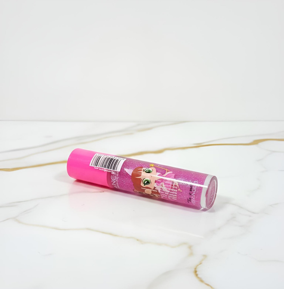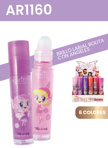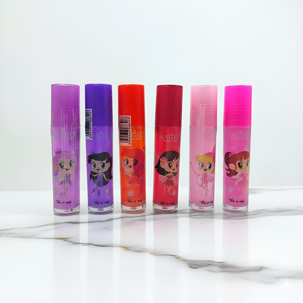 (Brillo Labial "4 Angels". Este brillito cuenta con 6 opciones diferentes. Cada uno con un rico aroma frutal. Ideal para que tus labios brillen al natural).