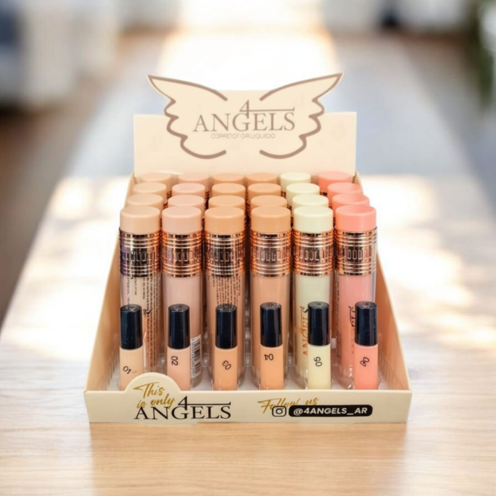 (Caja x24U Corrector Liquido "4 Angels", cuenta con 6 opciones diferentes. Es de muy buena cobertura. Ideal para que no falte en tu maquillaje).
