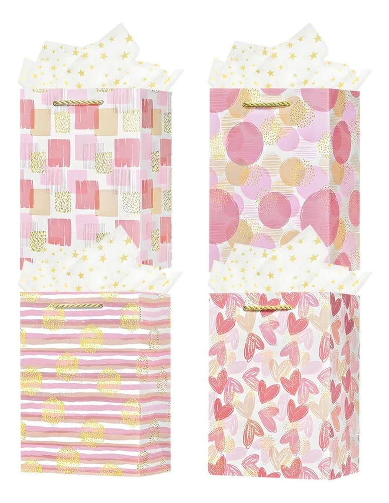 (Pack x12u de bolsa de regalo que cuenta con varias opciones diferentes. Nunca puede faltarte para cuando necesites hacer un regalo).