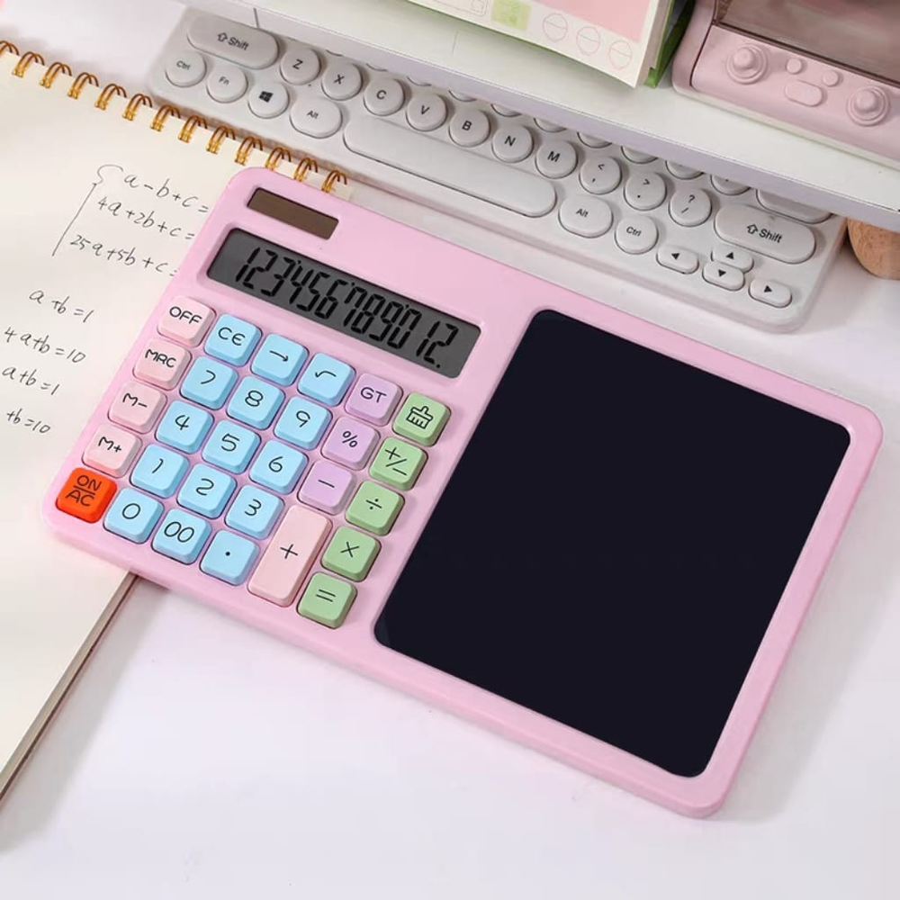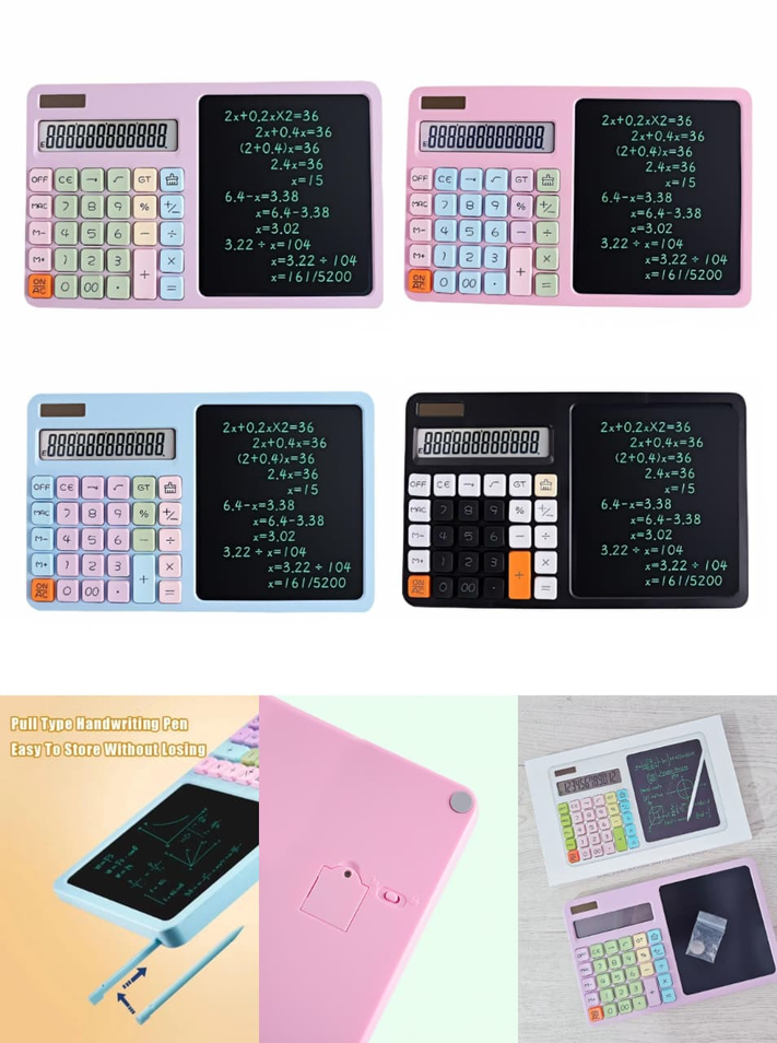 (Calculadoras Pasteles de 12 dígitos, cuenta con una pizarra borrable y un lapiz, ideal para uso escolar o de oficina. Para uso de debe utilizar 1 pila boton 3V).