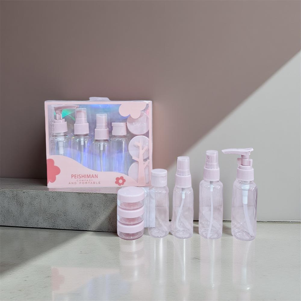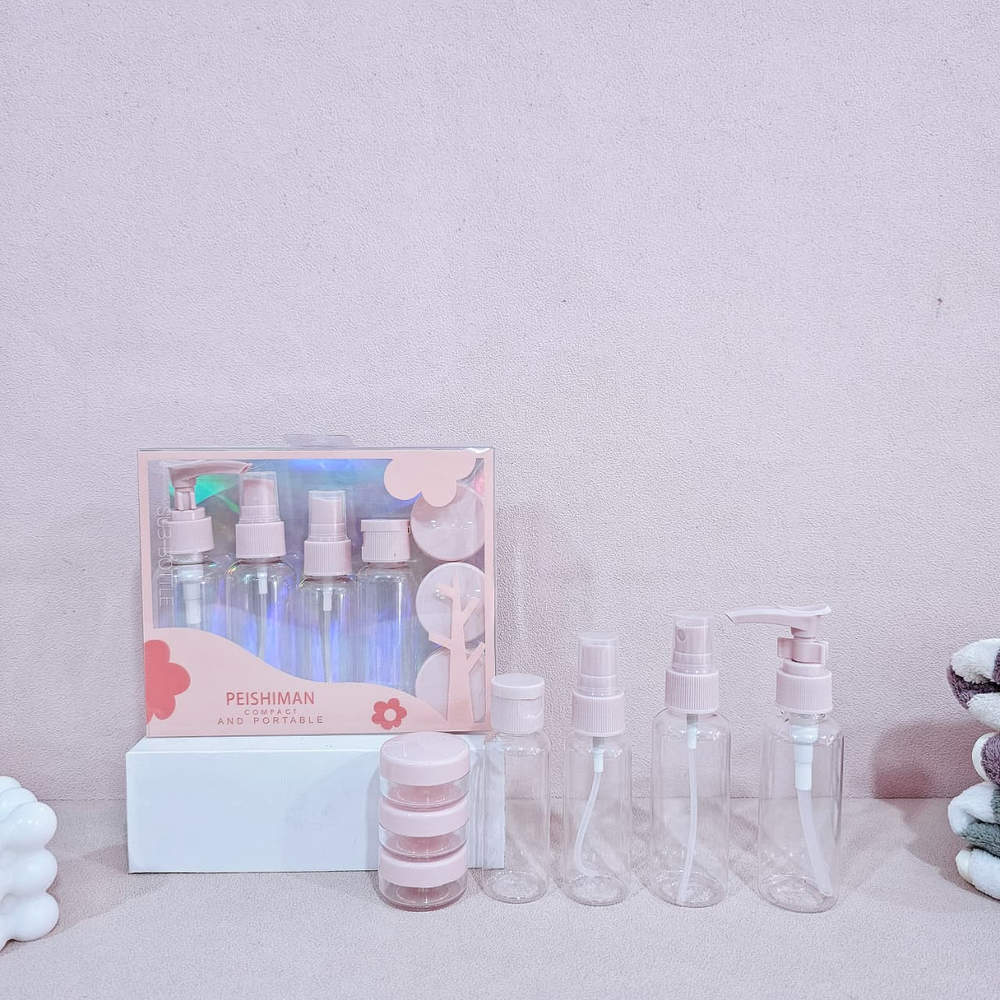 (Cada set cuenta con un dispensador, 2 rociadores , 1 frascos y 3 potes para cremas).