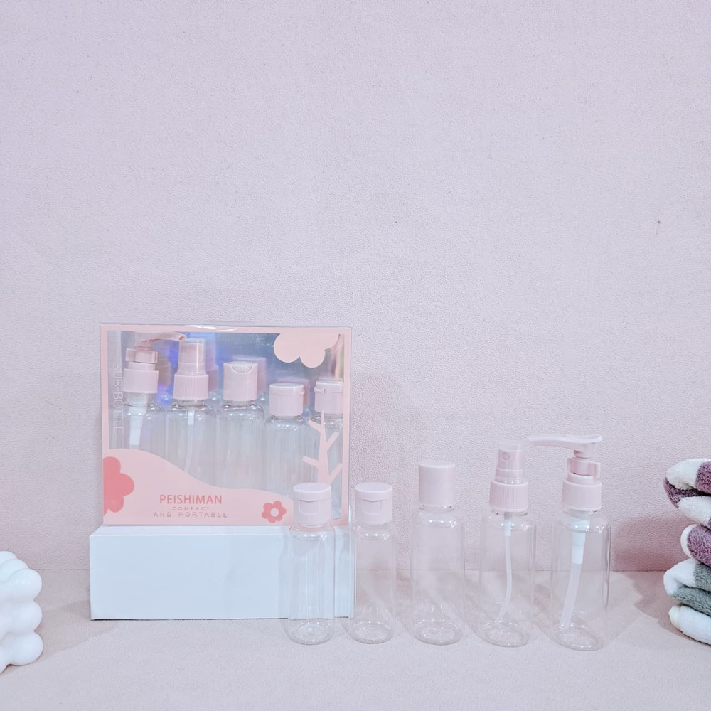 (Cada set cuenta con 1 dispensador, 1 rociador, 3 frascos para cremas).