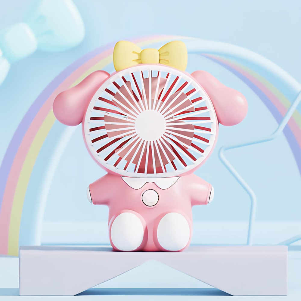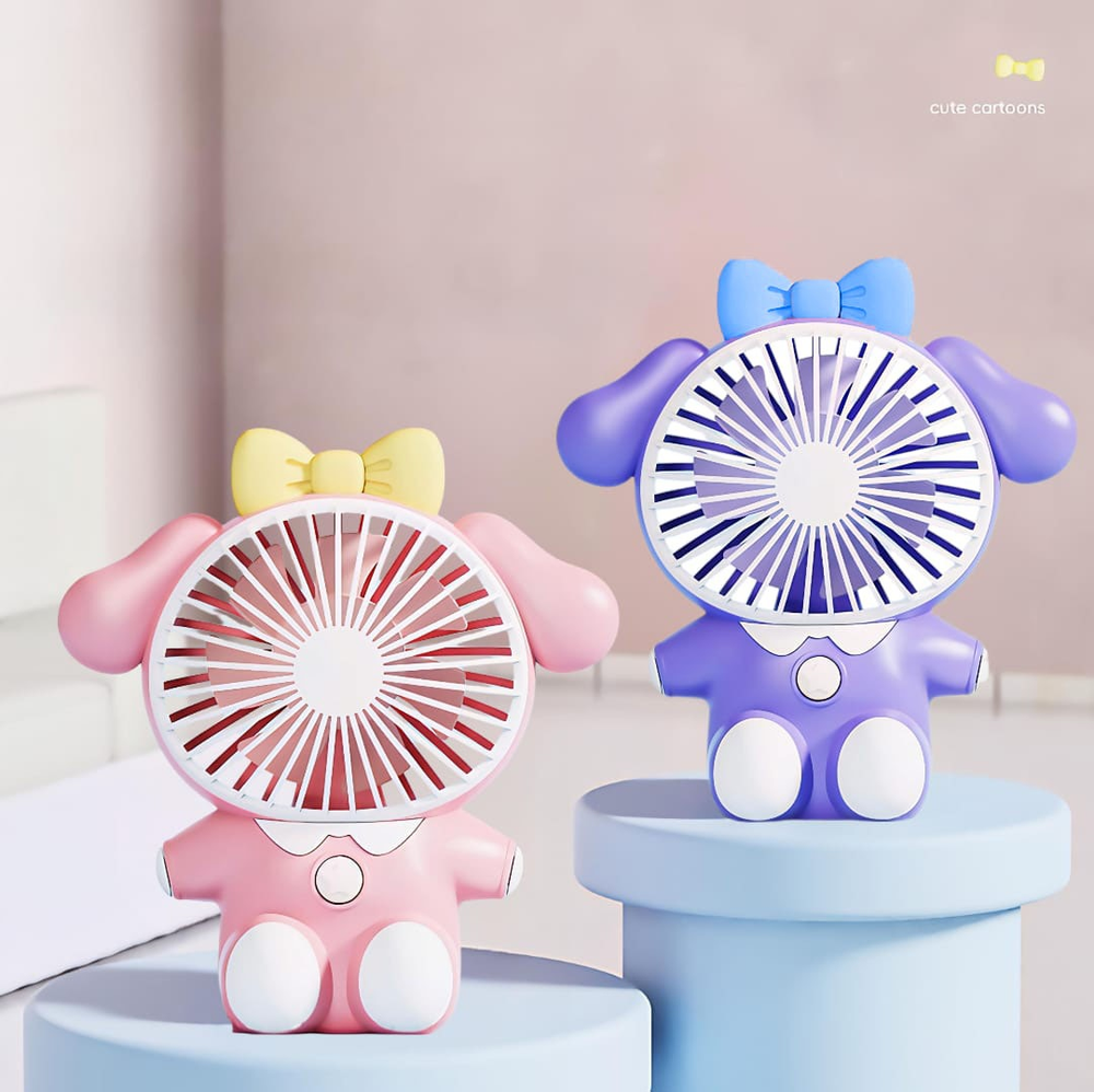 (Ventilador portátil que dispone de cable USB para carga. Boton de encendido/ apagado en la parte delantera)