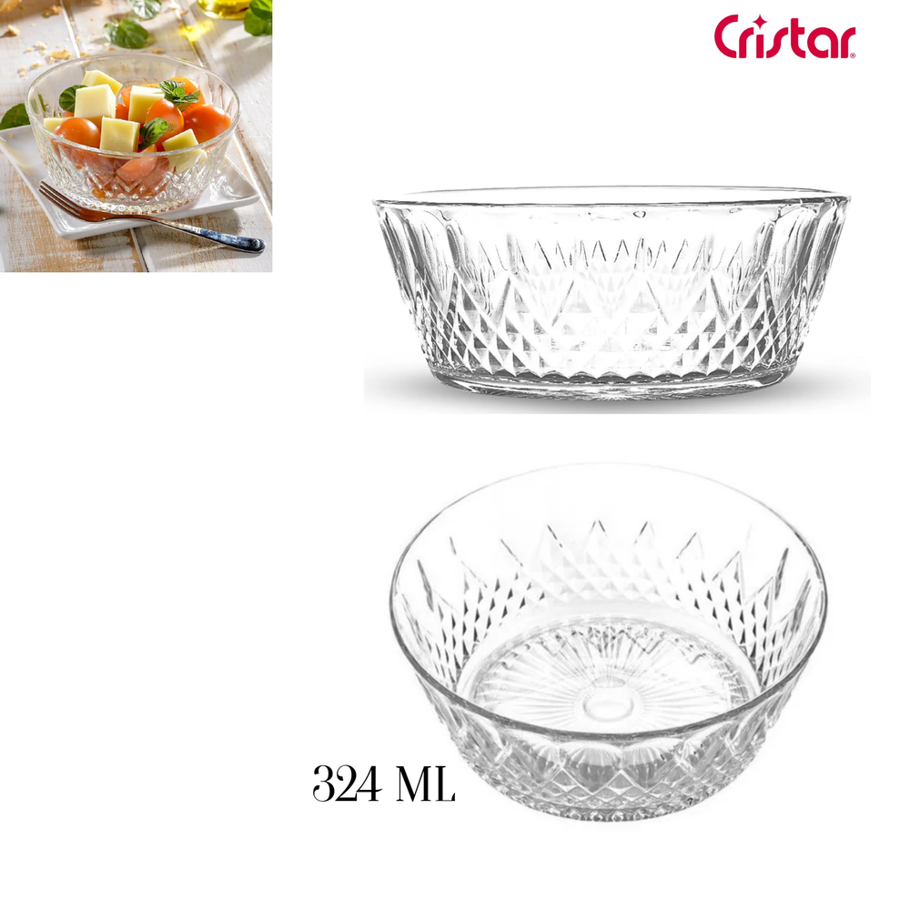 (Bowl transparente, marca "Cristar" de vidrio con capacidad de 324 ml).