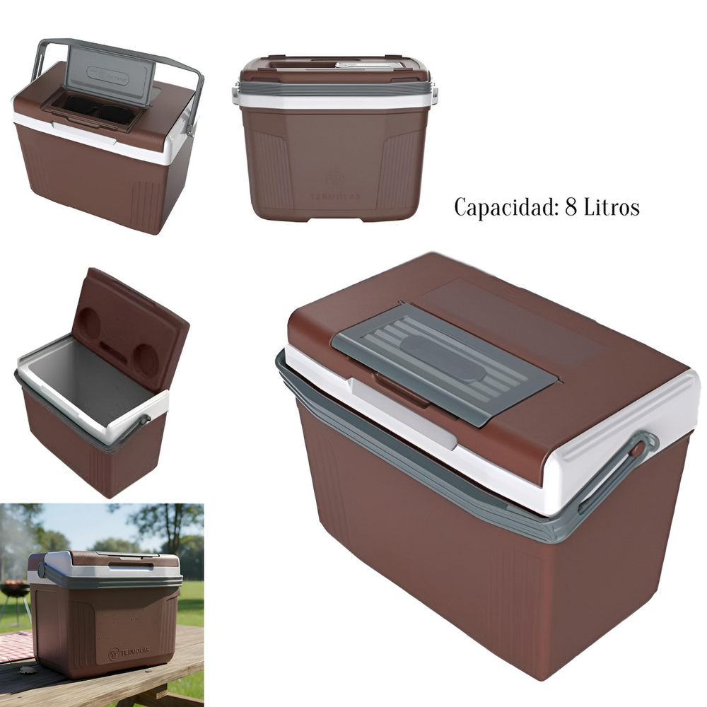 (Conservadora Termolar de 8 litros ideal para mantener tus alimentos y bebidas frescos por más tiempo en un diseño compacto y liviano. Conserva la temperatura hasta 20 horas con hielo y 8 horas sin él. Su estructura externa de plástico resistente la hace duradera y fácil de transportar, mientras que sus materiales son libres de BPA y no tóxicos, asegurando total seguridad para el almacenamiento de alimentos. Su diseño ergonómico incluye un práctico compartimento en la tapa para guardar el celular u otros objetos pequeños, manteniéndolos protegidos y accesibles. Tiene manija retráctil con cierre de seguridad, su tapa es reversible donde podes encontrar posavasos, es segura, útil y versátil. Además, el innovador Sistema Air Flow optimiza la circulación de aire desde la base, mejorando la conservación térmica. Ligera, resistente y funcional, esta conservadora es la compañera perfecta para cualquier aventura).