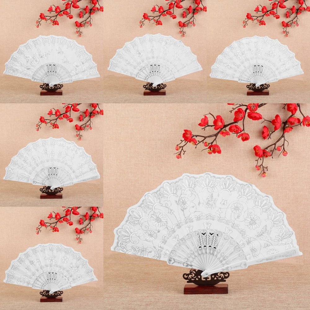 (Abanico plegable de plástico, con diseño de flores y mariposas y detalles con brillo. Tamaño ideal, ligero, plegable y fácil de transportar y almacenar).