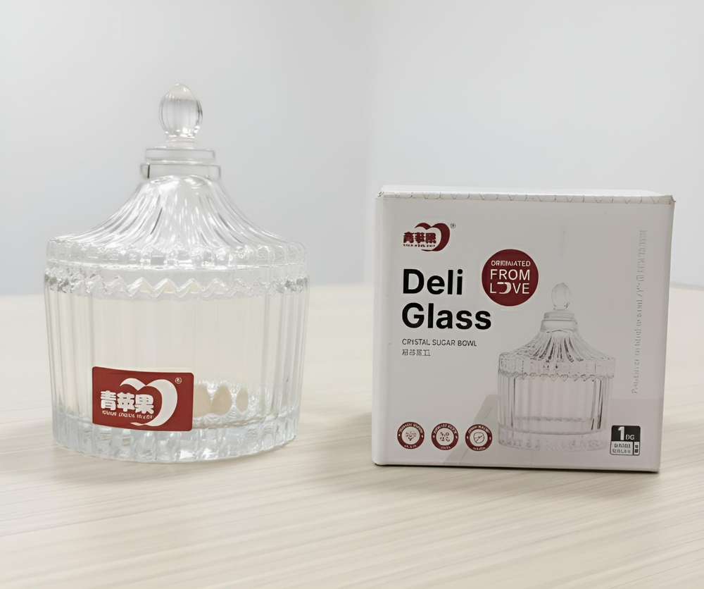 (Caramelera mini con delicado diseño, de vidrio. Ideal para usar como souvenir rellenándolo con caramelos, bombones o mas bien como decoración, apto como porta velas. Presentación en caja).