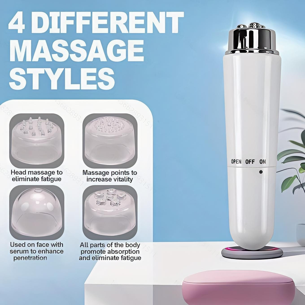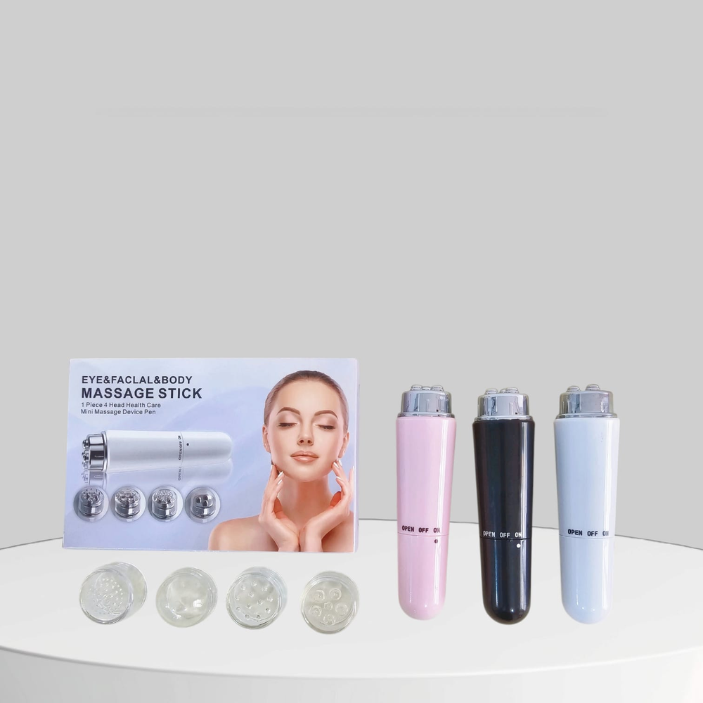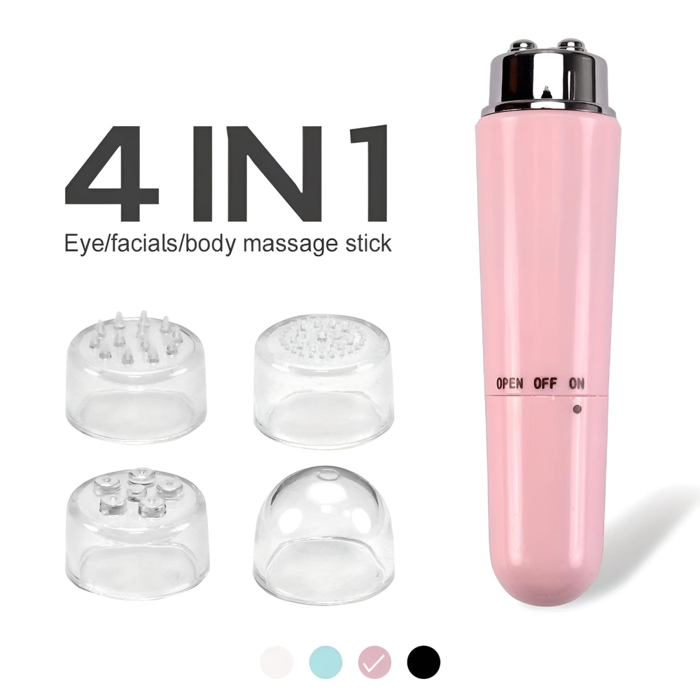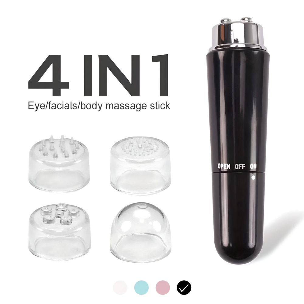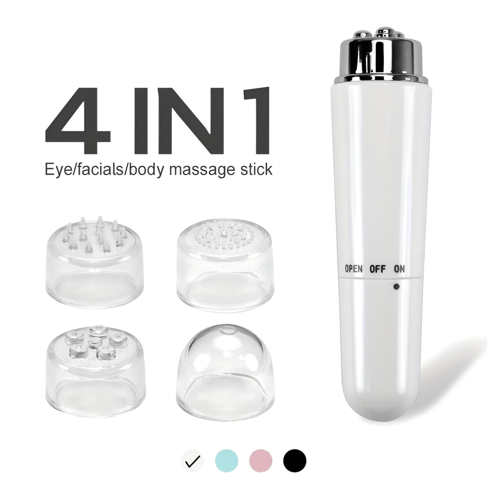 (Promueve la circulación sanguínea a los músculos y tejidos, ayuda a la relajación y reduce la tensión muscular. El masajeador viene con diferentes cabezales intercambiables para diversas aplicaciones en distintas partes faciales. Funciona con 1 pila AA (no incluida)).