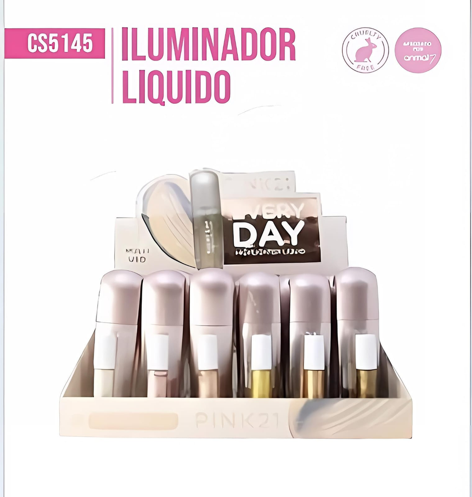 (Caja x 24 Iluminador líquido con una textura ligera y fácil de difuminar. Se puede aplicar en pómulos, nariz, arco de cupido y párpados para un acabado radiante y brillante).