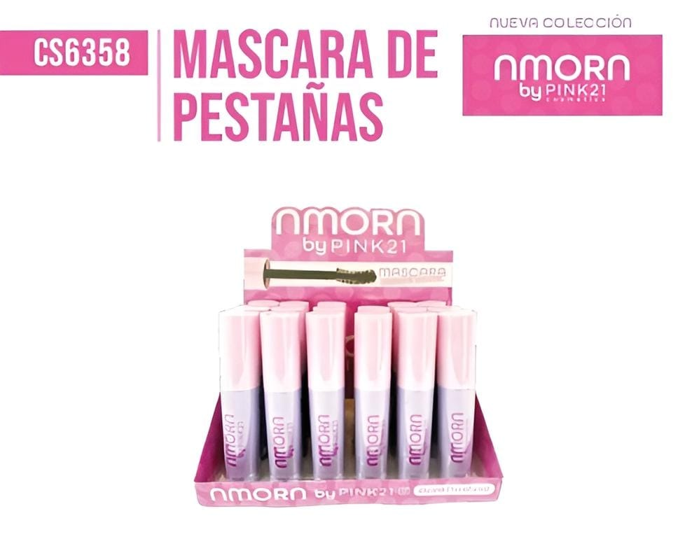 (Caja x 24U. Máscara de Pestañas Pink 21, un producto de maquillaje diseñado para definir, dar volumen y alargar las pestañas. La fórmula está diseñada para lograr pestañas con volumen, definición y alargamiento en una sola aplicación, evitando grumos).