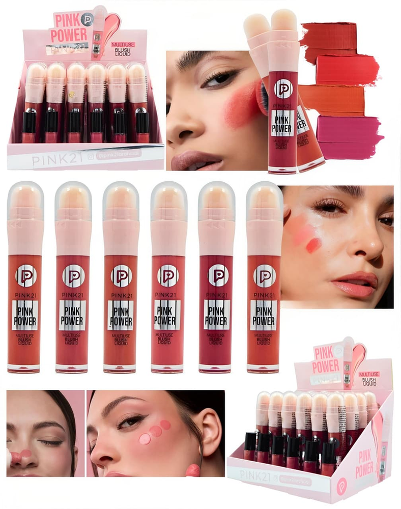 (Caja x 24U. Rubor Liquido versátil que se puede aplicar en las mejillas, labios y párpados para dar un toque de color natural).