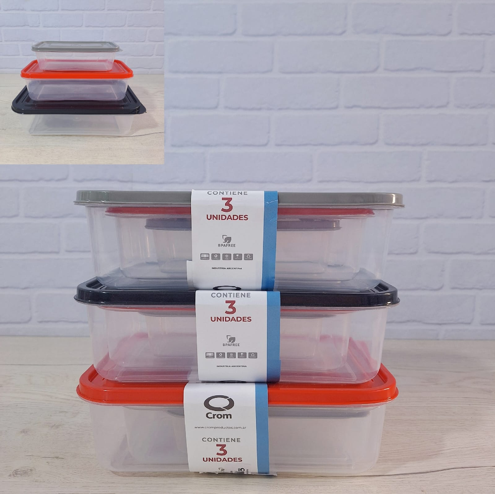 (Set x3 Tupper Herméticos de excelente sellado y resistencia, son Ideales para la organización en general y cuentan con sistema apilable).