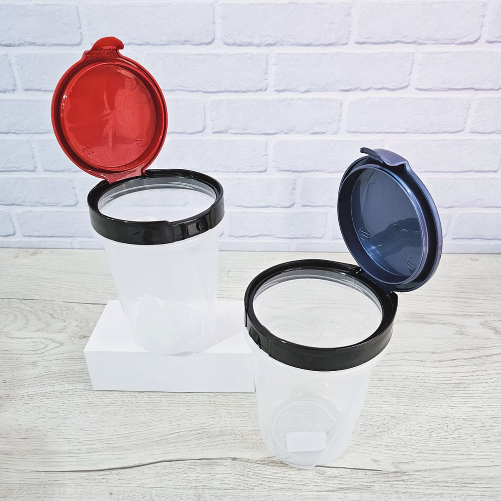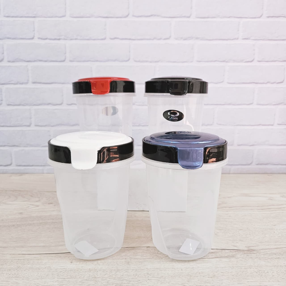 (Tarro de plástico transparente con tapa. Multiuso, para ensaladas, postres, azúcar, yerba, etc.).