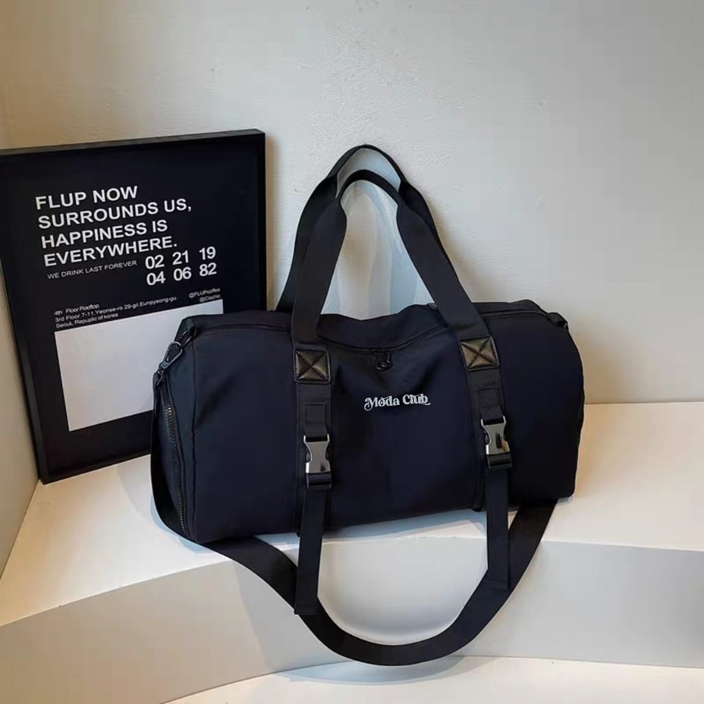 (Cuenta con 3 bolsillos internos, un bolsillo trasero, un bolsillo lateral, un compartimiento para zapatos e incluye correa larga).