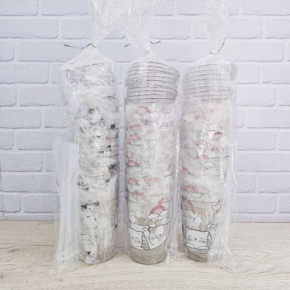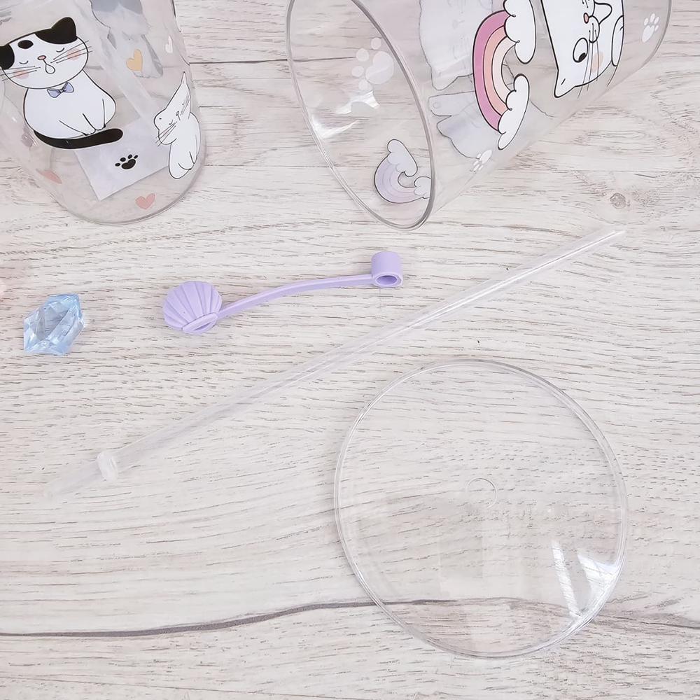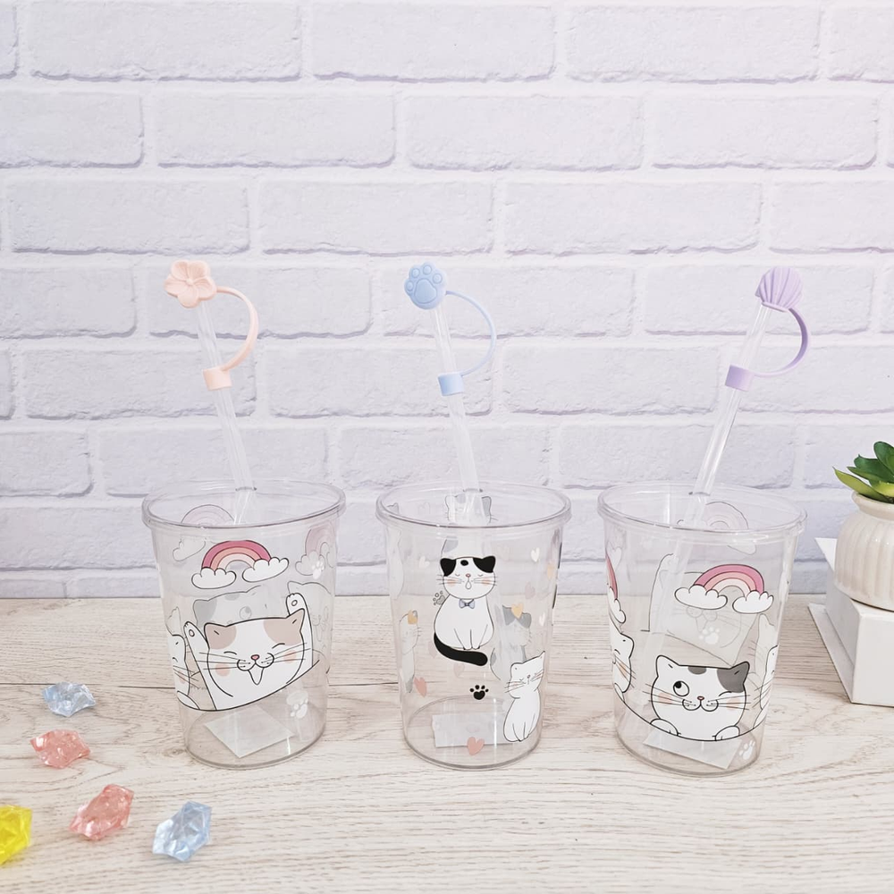 (Vaso con tapa y sorbete. Disponible en 3 colores de tapas, las estampas de gatitos pueden llegar a variar. Capacidad 500ml). UT35