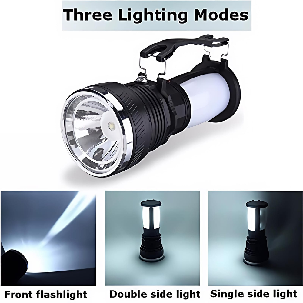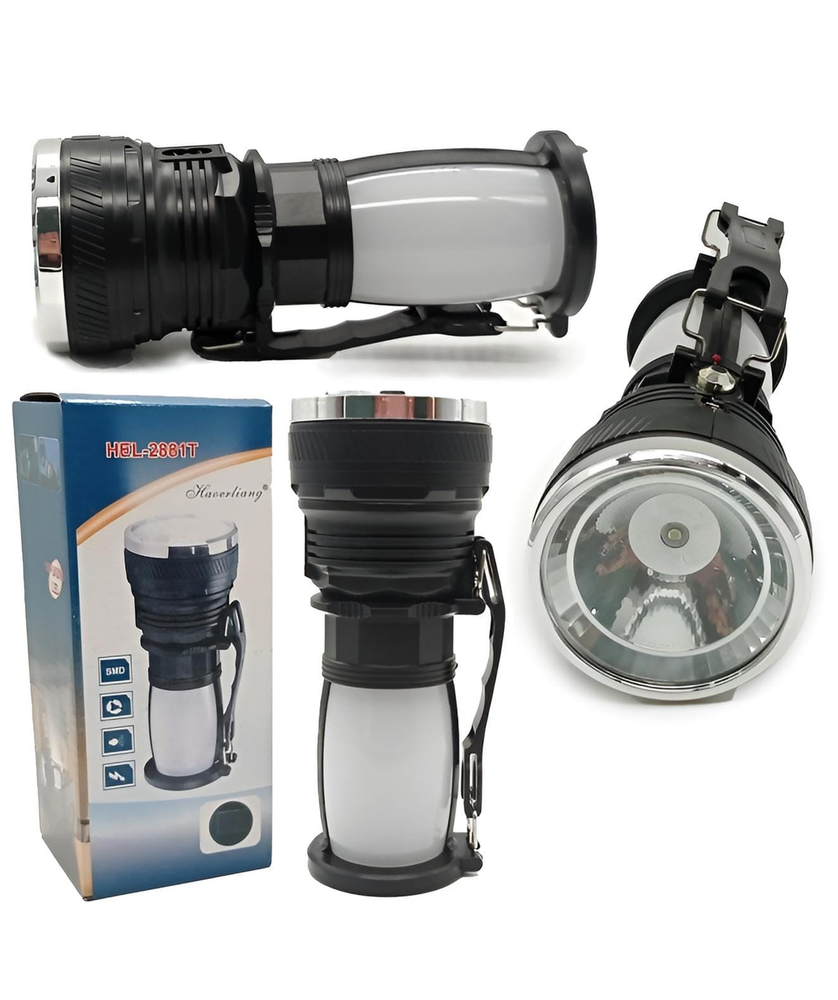(Linterna portátil recargable. Cuenta con enchufe incorporado para conectar directo a la corriente y función de carga con energía solar. Luz fría en la parte frontal y lateral. 1W).