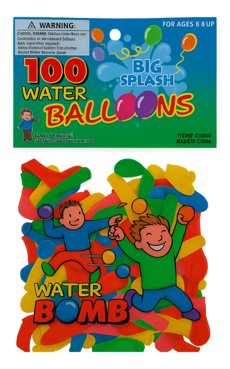 (Paquetes de pequeños globos de colores. Llena con agua, atá y lanzá. La forma más refrescante de disfrutar al aire libre).