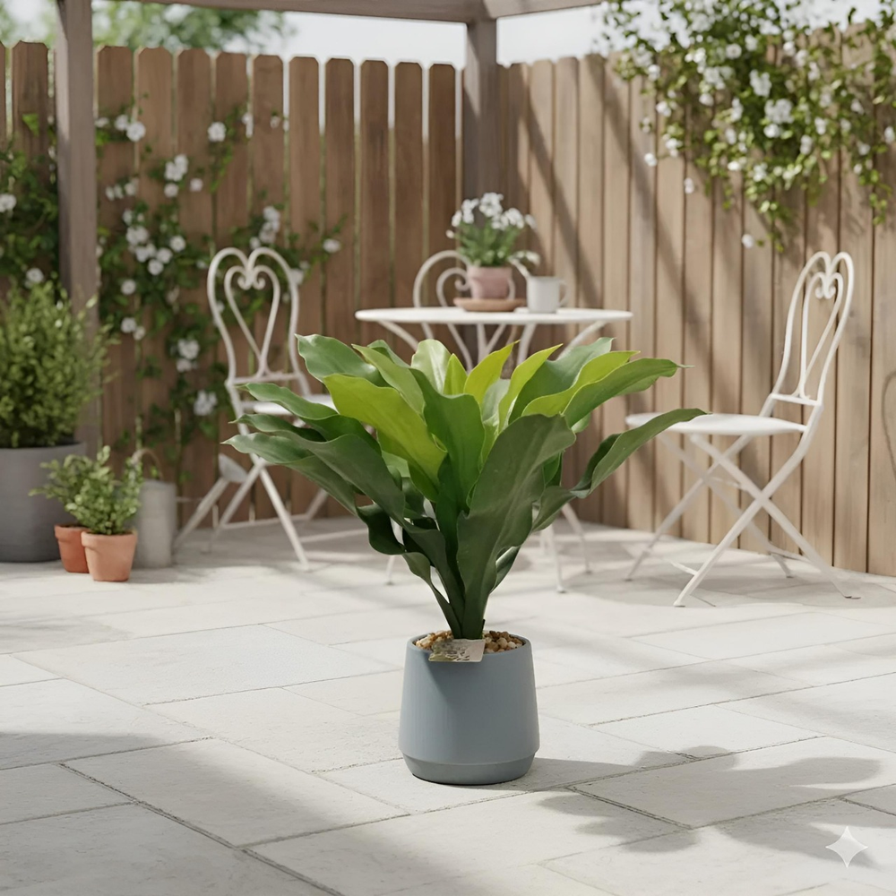 (Planta artificial con 19 hojas en maceta con piedras decorativas. Es una hermosa decoración para nuestro hogar, que además de darle un toque verde, no necesita cuidados).