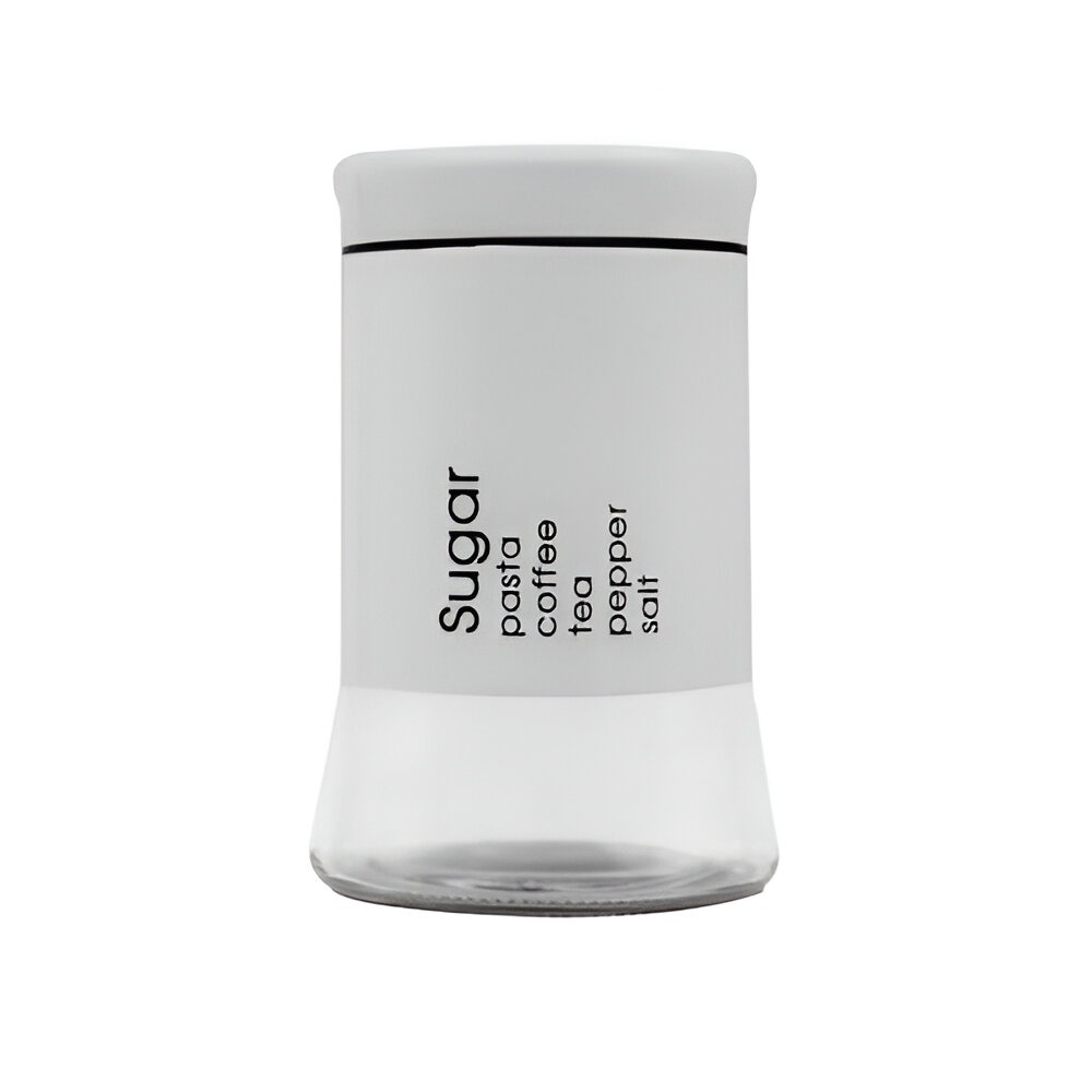 (Frasco de vidrio tamaño mediano de color blanco. Ideal para colocar azúcar, café, yerba, pastas o lo que usted desee).