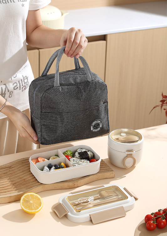 Recipiente chico: Diametro: 10cm x Alto: 9cm Recipiente grande: Largo: 11cm x Ancho: 21cm x Alto: 6cm Bolso Térmico: Largo: 12cm x Ancho: 22cm x Alto: 19cm